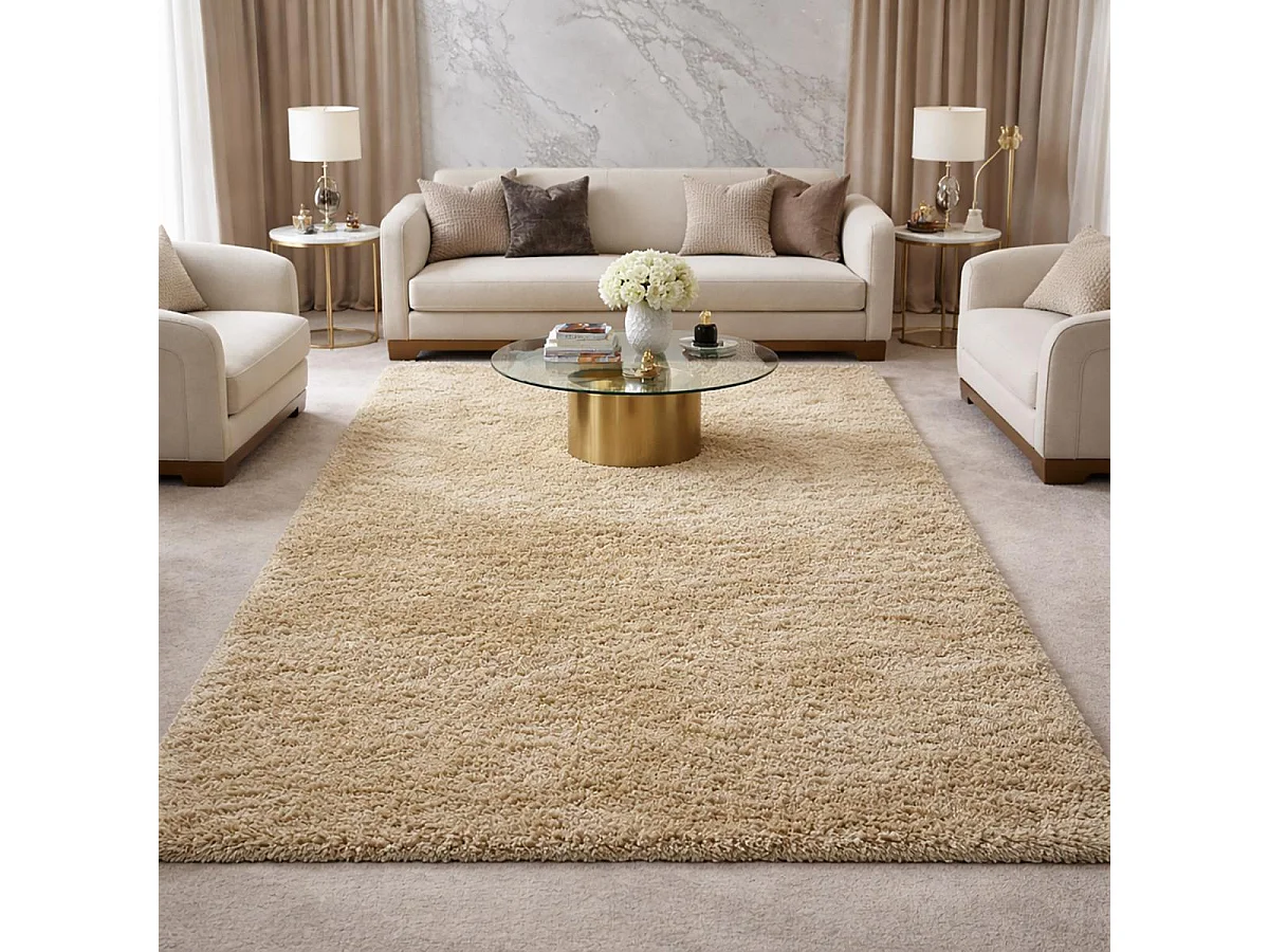 Tappeto Shaggy 160x230 rettangolo fatto a mano panna fantasia tinta unita MALAIDROY