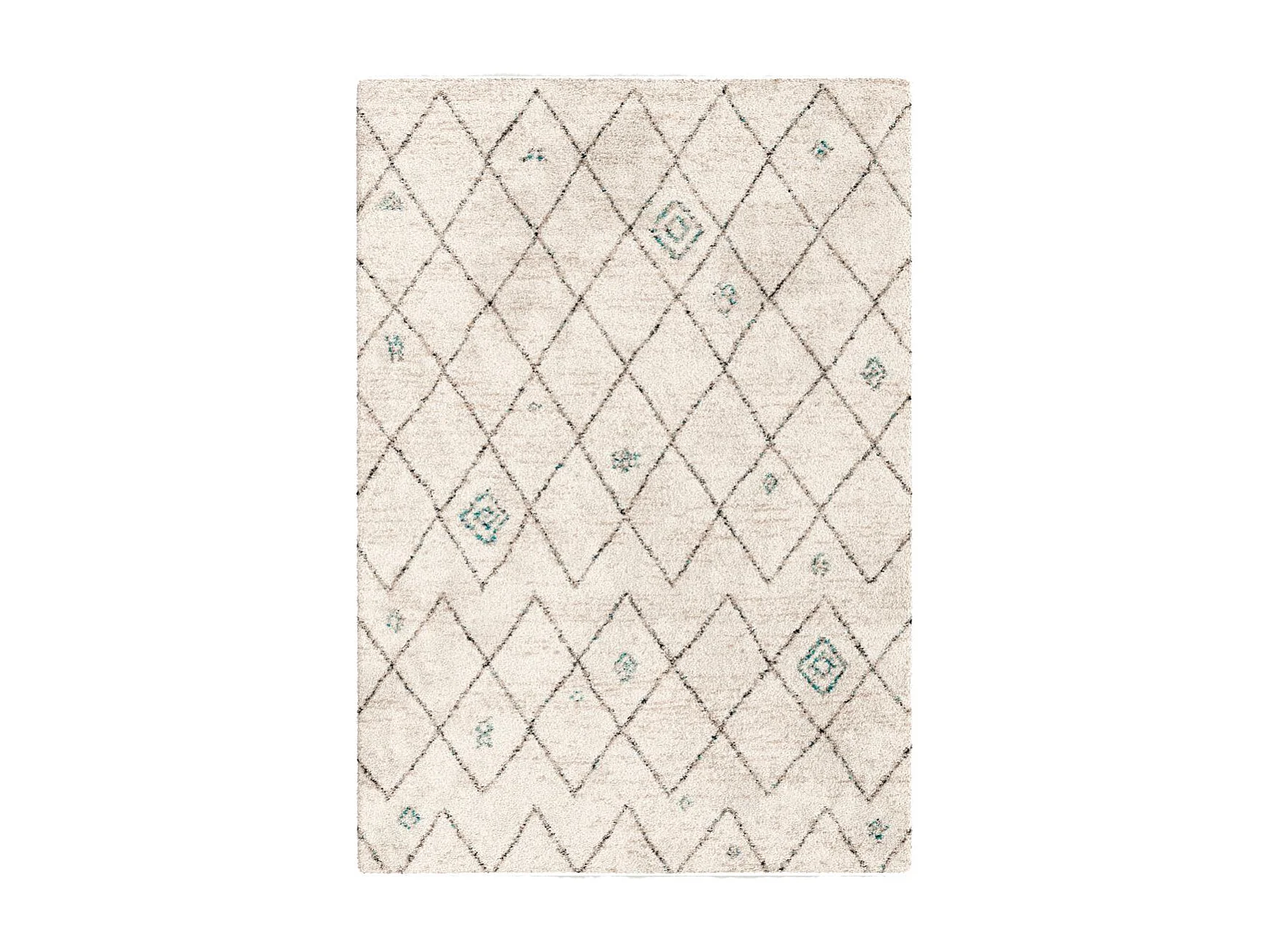 Tappeto Shaggy 200x290 rettangolo intrecciato color crema e blu con motivo berbero AMORE 2