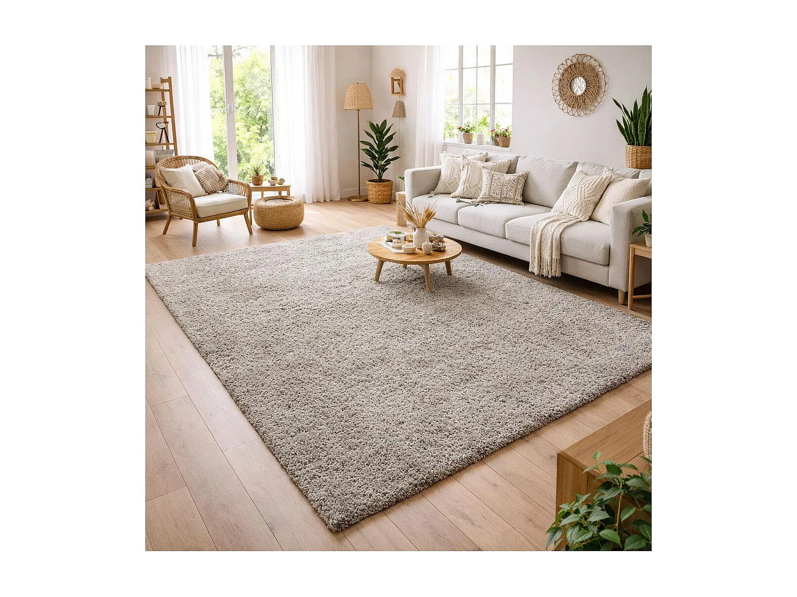 Tappeto Shaggy a pelo lungo 240x340 rettangolo intrecciato beige tinta unita UNI L