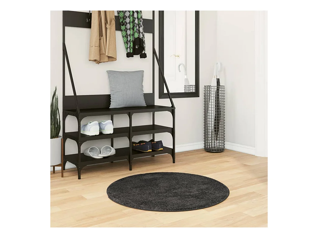Tappeto a Pelo Corto HUARTE Morbido e Lavabile Antracite Ø 80cm