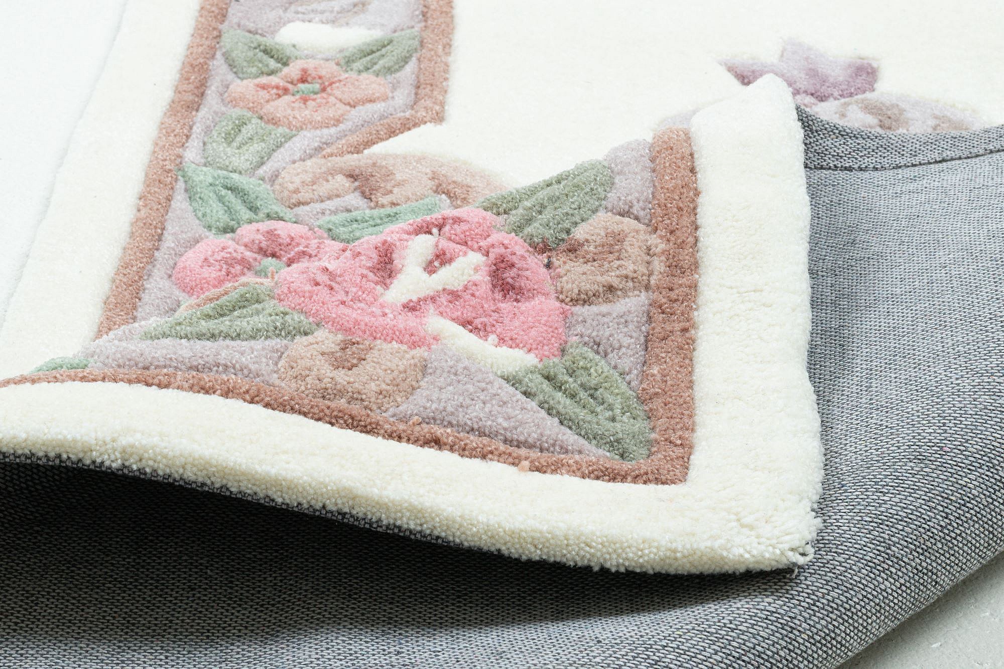 Tappeto tuftato a mano con bordatura in stile Aubusson 70x600 cm beige Ming