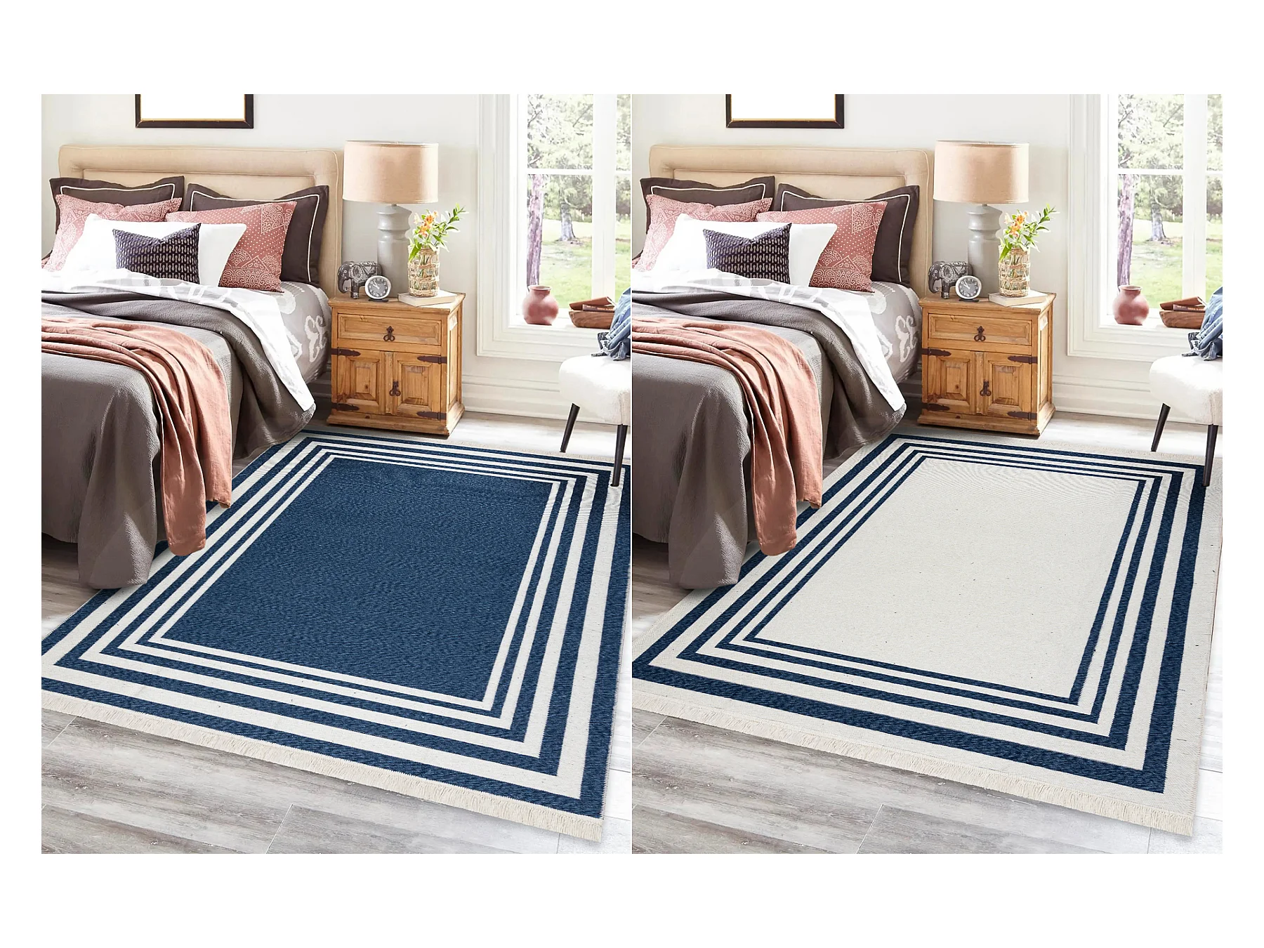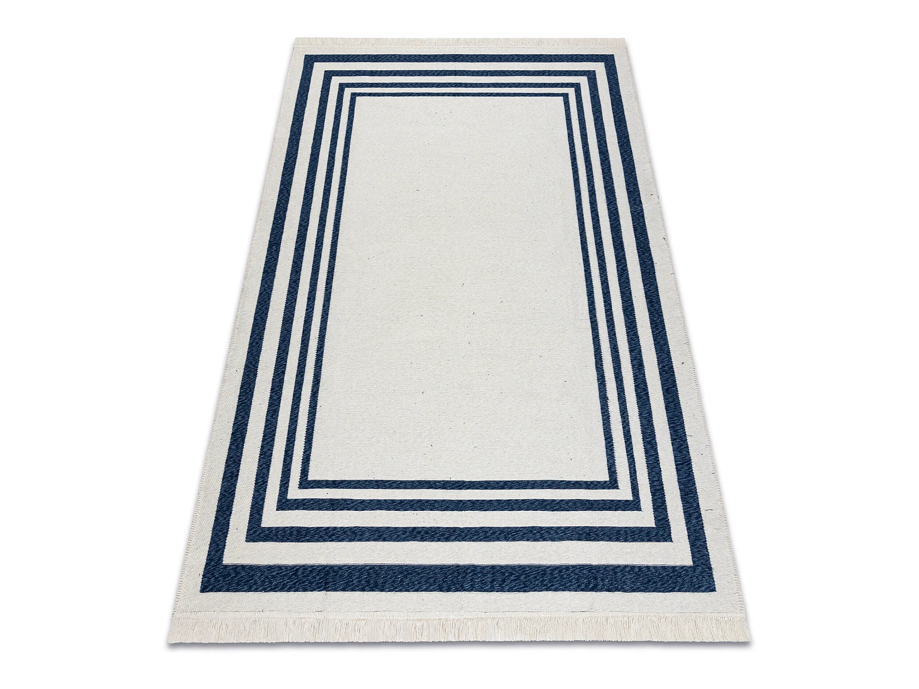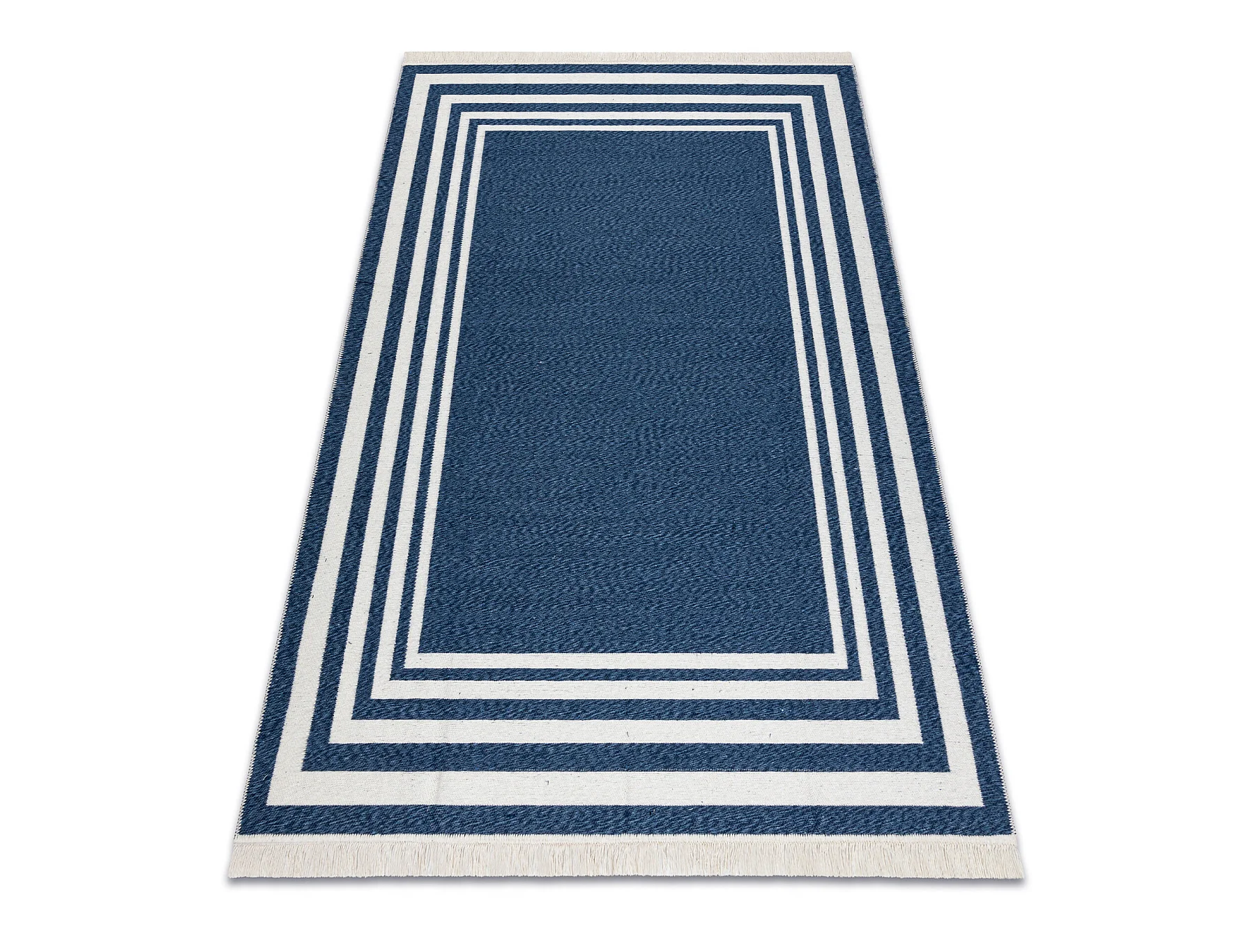 Tappeto TWIN 22990 Telaio, cotone, bifacciale, Frange ecologiche - blu 120x170 cm