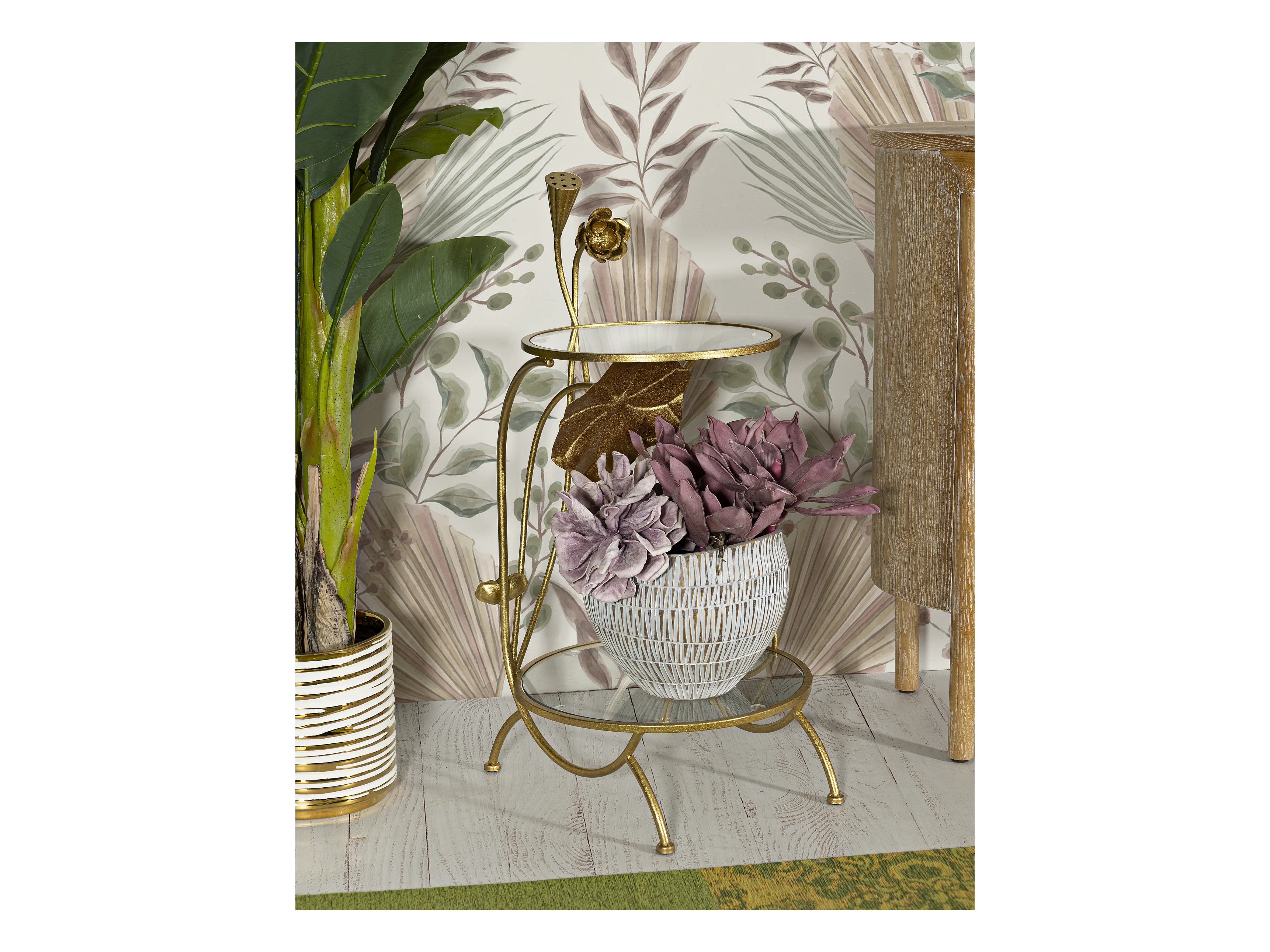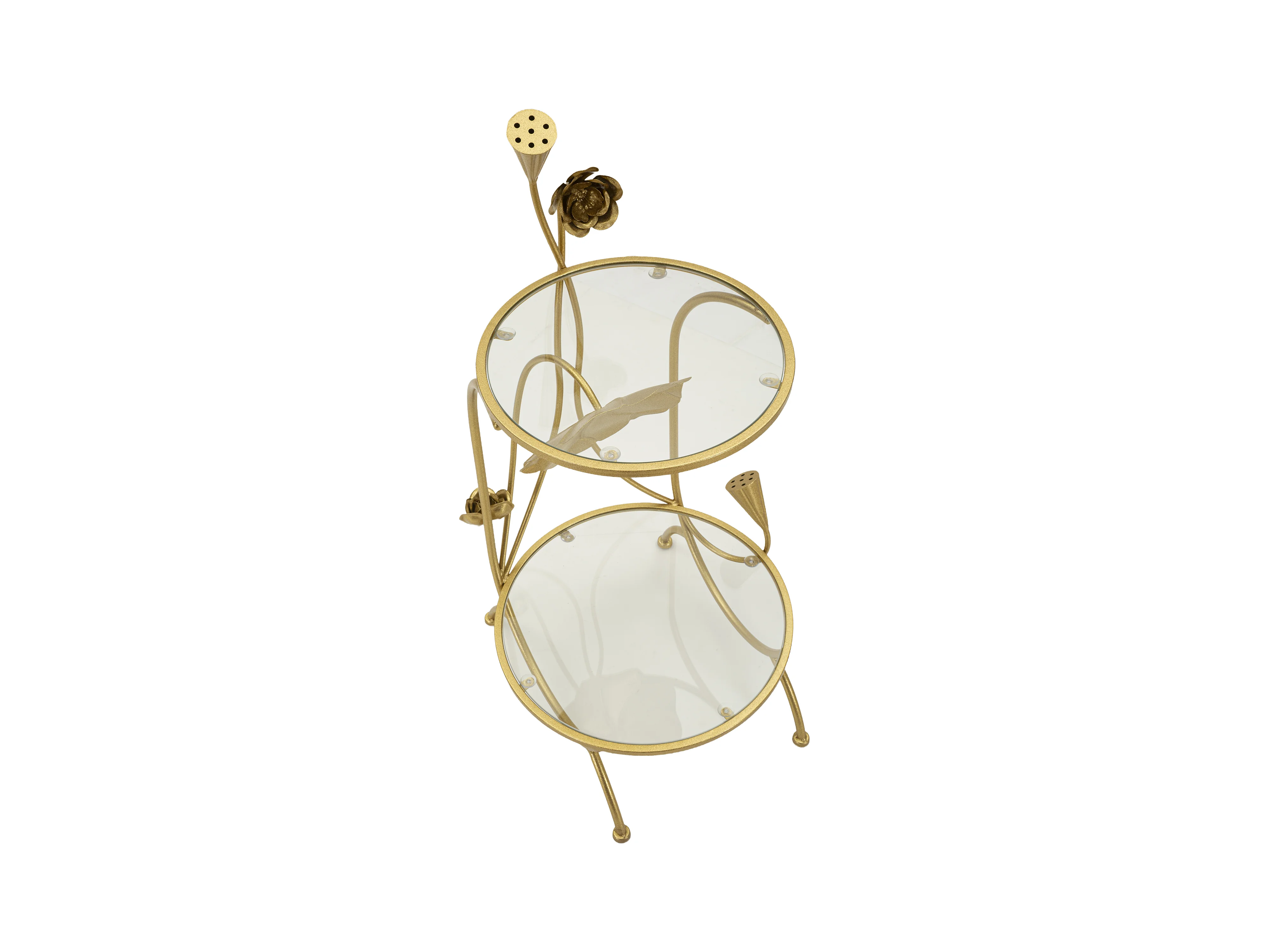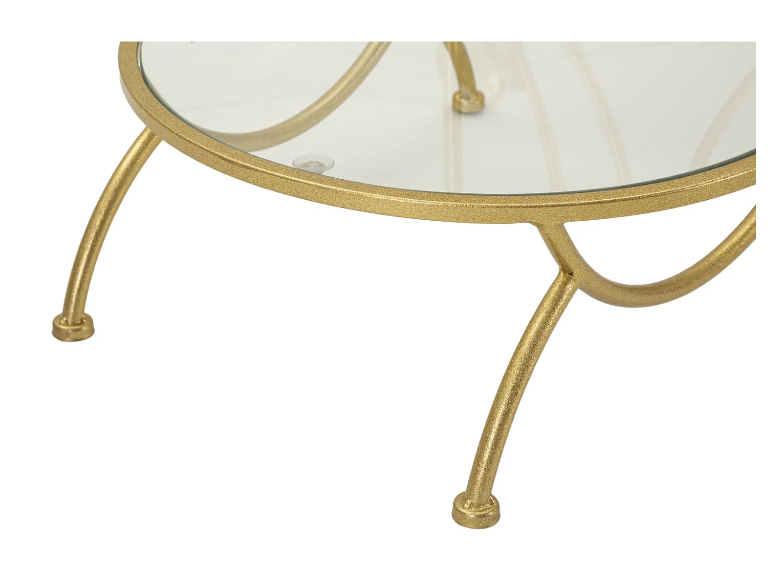 Tavolinetto con 2 ripiani in metallo dorato e vetro cm ø 40x78
