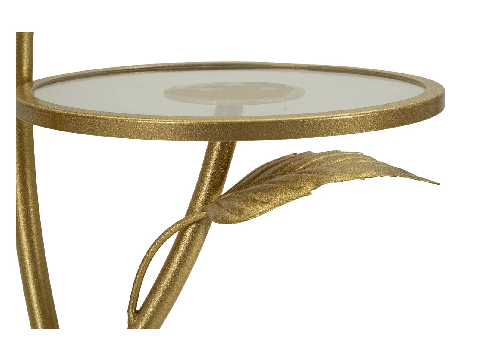 Tavolinetto con 2 ripiani in metallo dorato e vetro cm ø 40x78