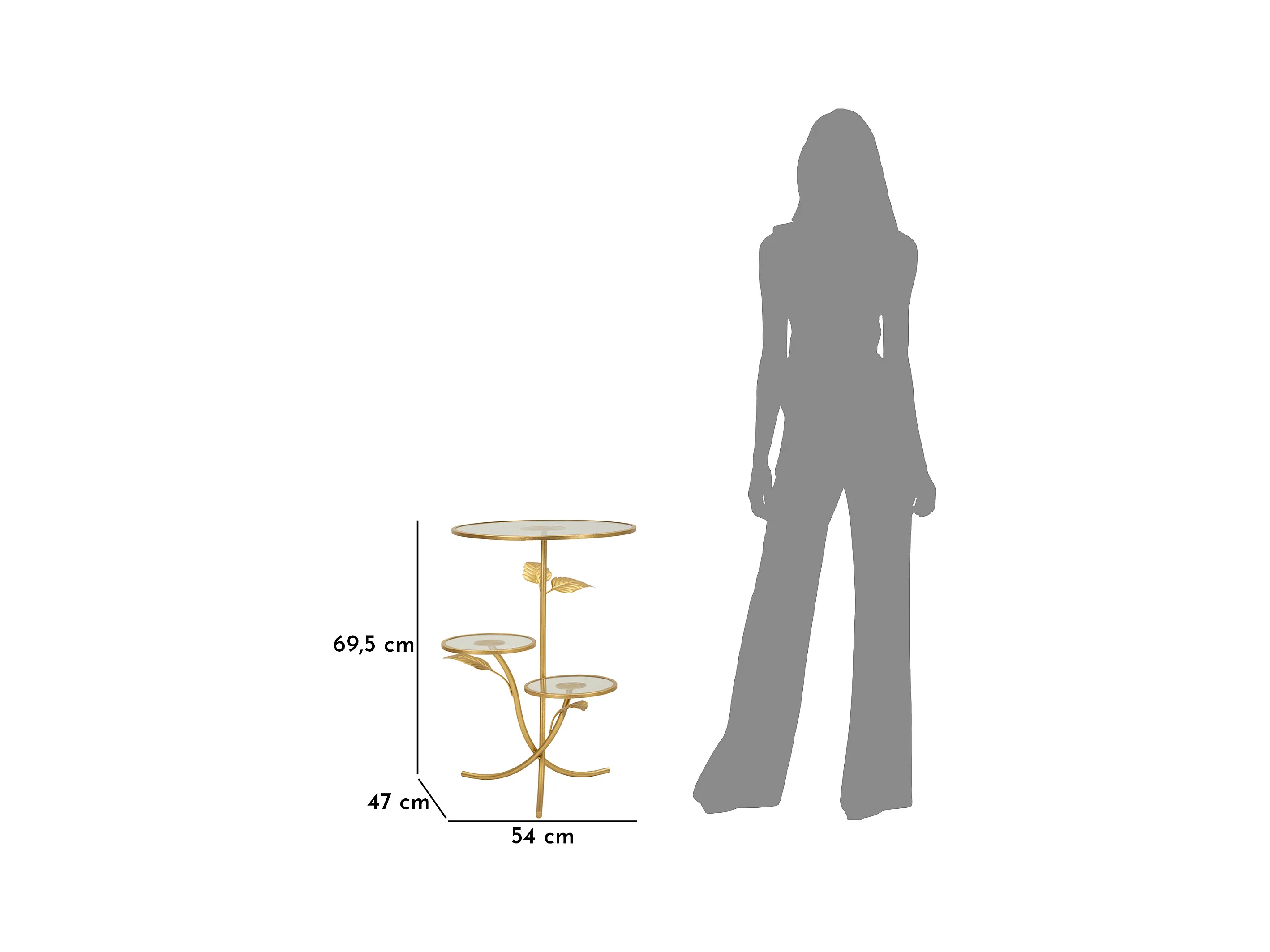 Tavolinetto con 3 ripiani in metallo dorato e vetro cm ø 54x69,5