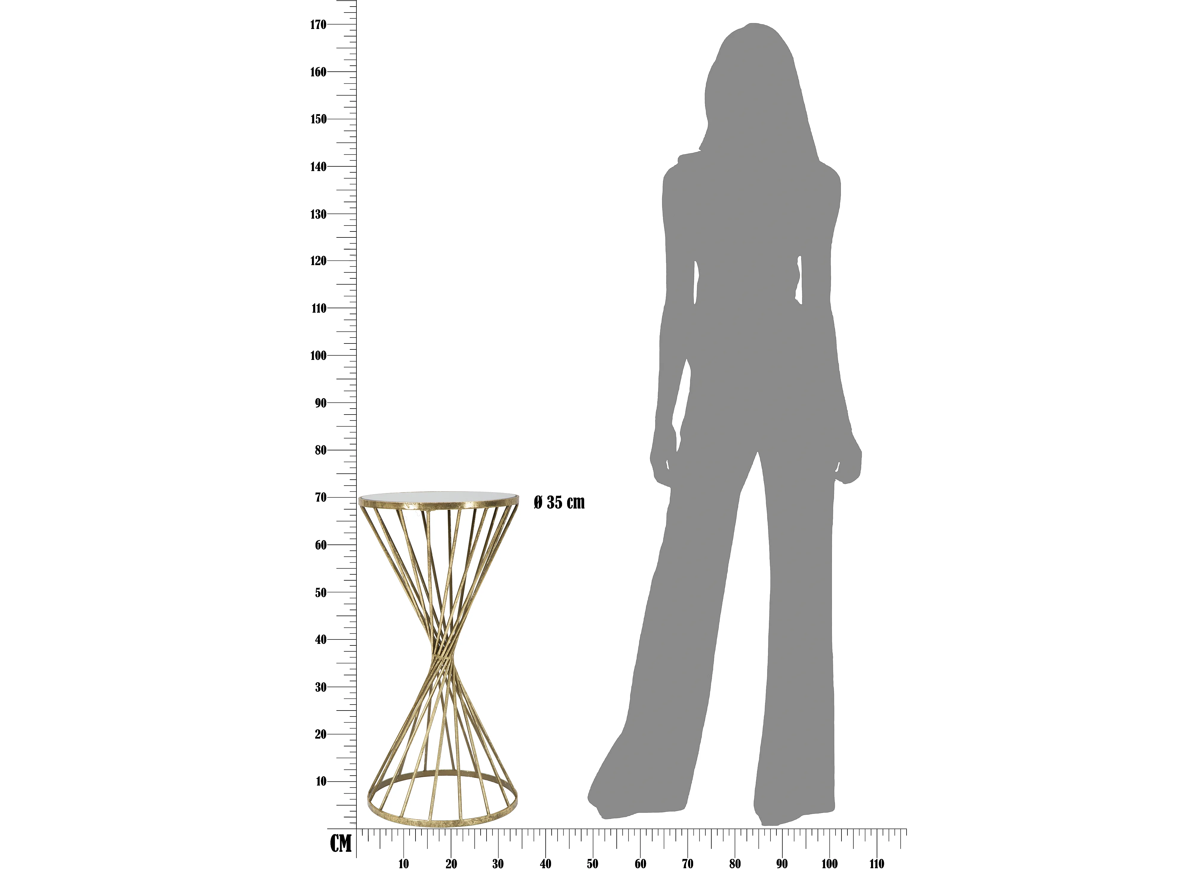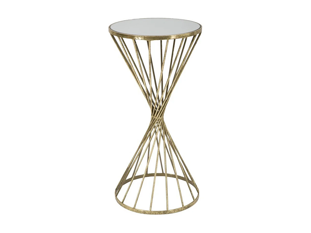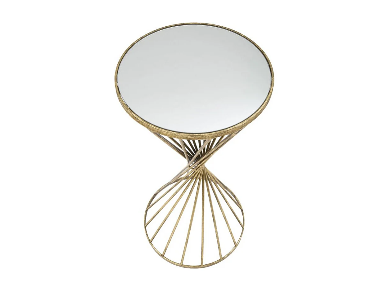 Tavolinetto in metallo dorato con piano a specchio Ø cm 35x70