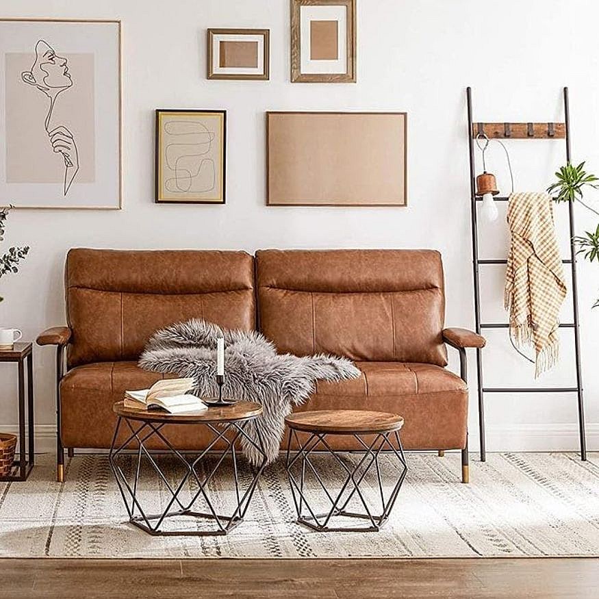 Tavolini caffè Valora Rustic Brown x2 struttura acciaio stile loft