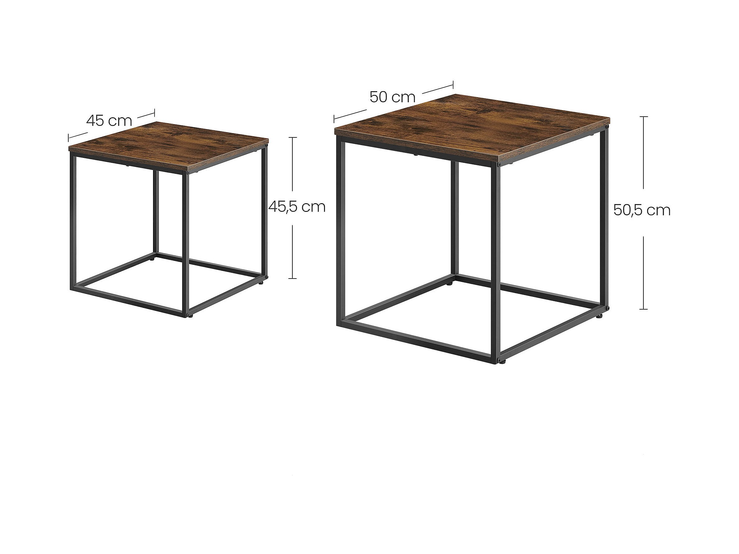 Tavolini da caffè quadrati Valora, set da 2 – piano in rovere Sonoma con gambe nere