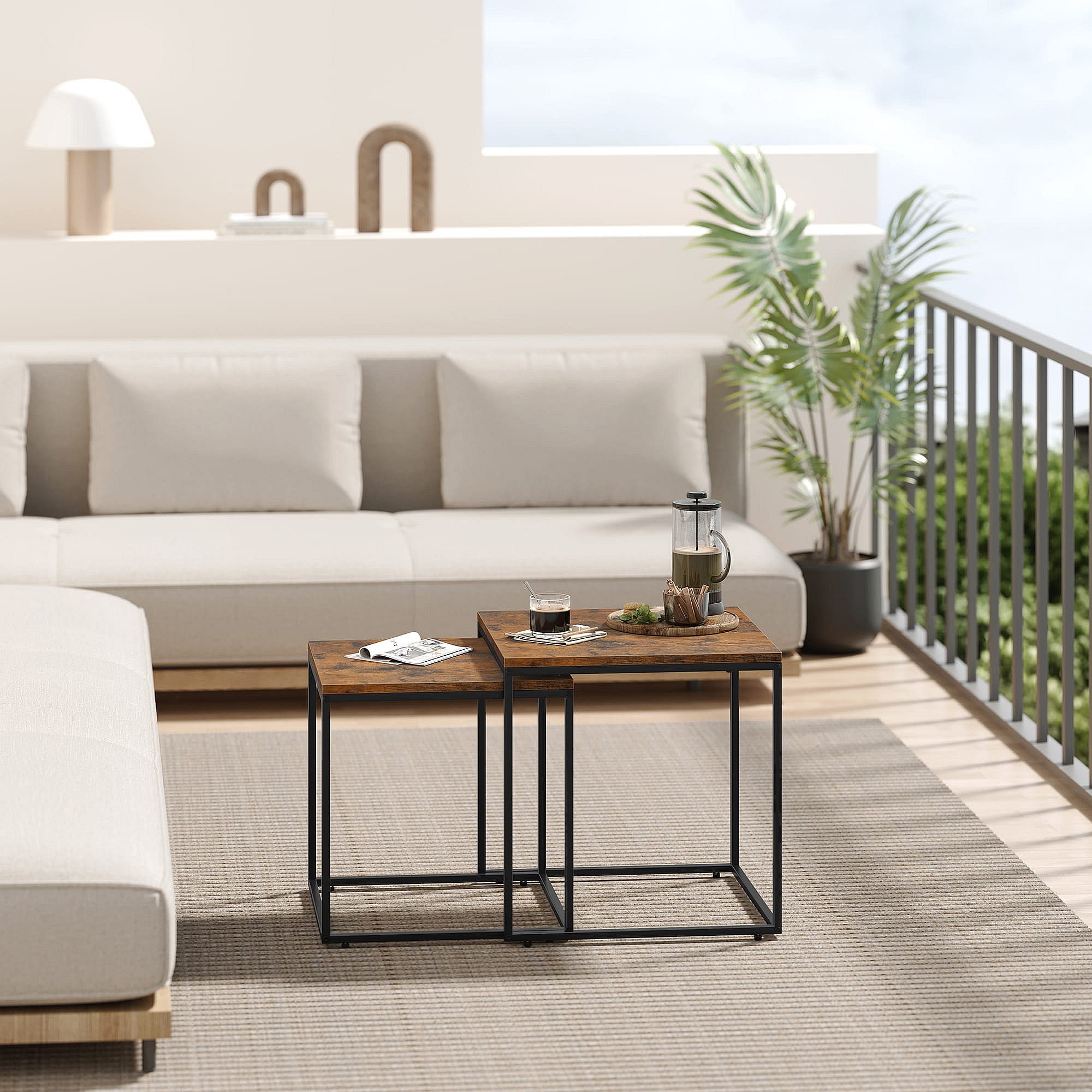 Tavolini caffè Valora Rustic Brown x2 struttura acciaio stile loft