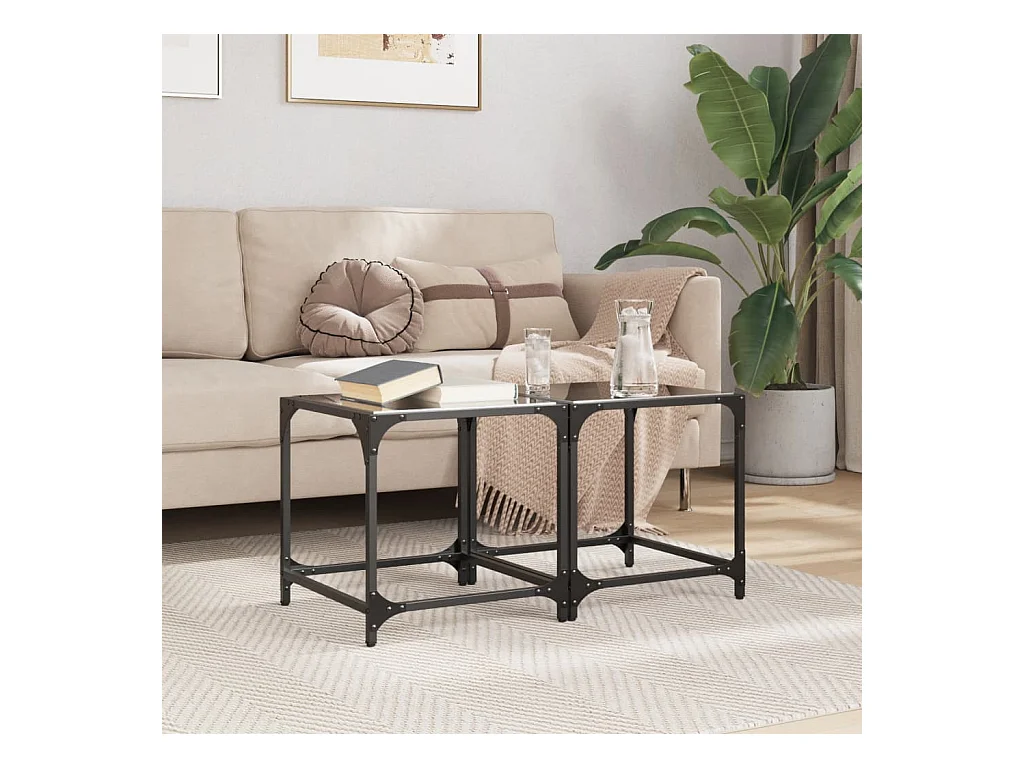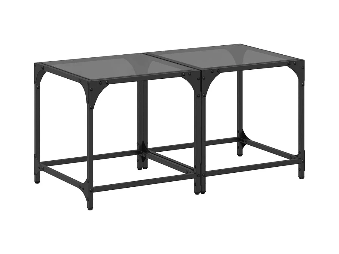 Tavolini con piano in vetro nero 2 pz 40x40x40 cm acciaio