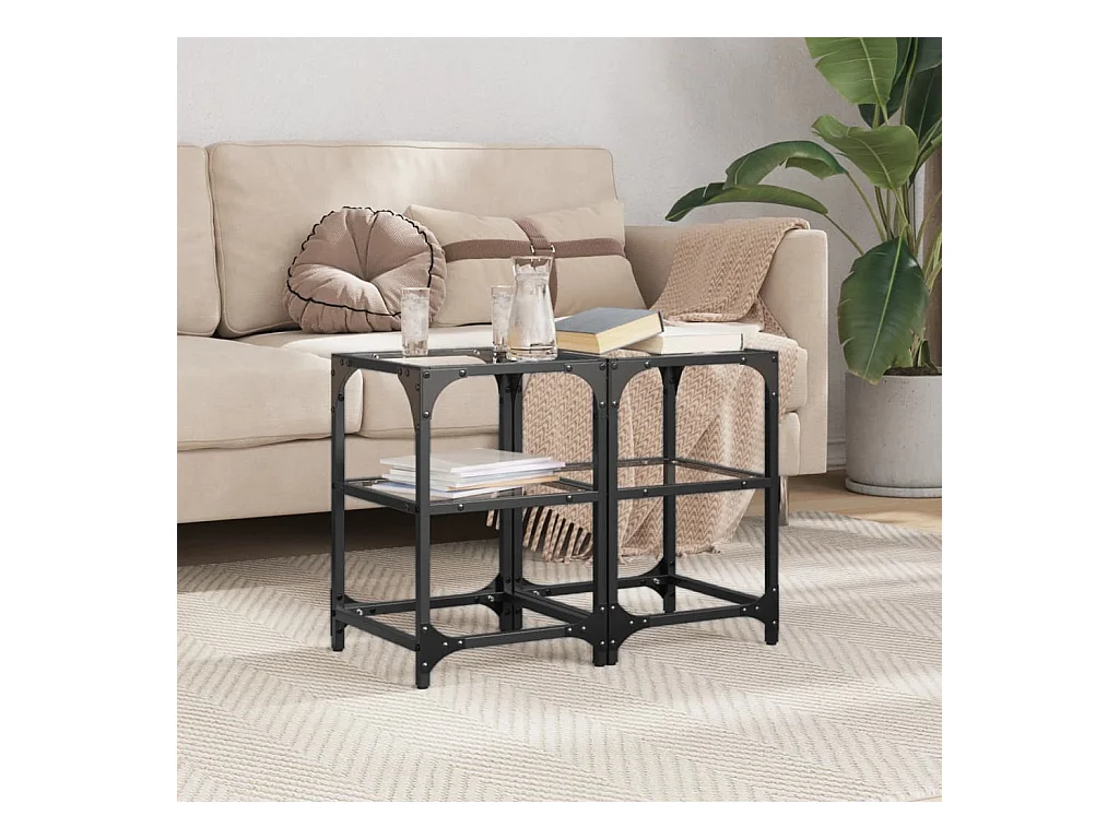 Tavolini con Piano Vetro Trasparente 2 pz 78,5x40x45 cm Acciaio