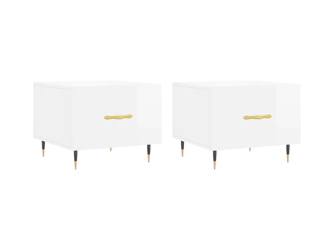 Tavolini da caffè 2 pezzi bianco lucido 50x50x40cm in legno ingegnerizzato