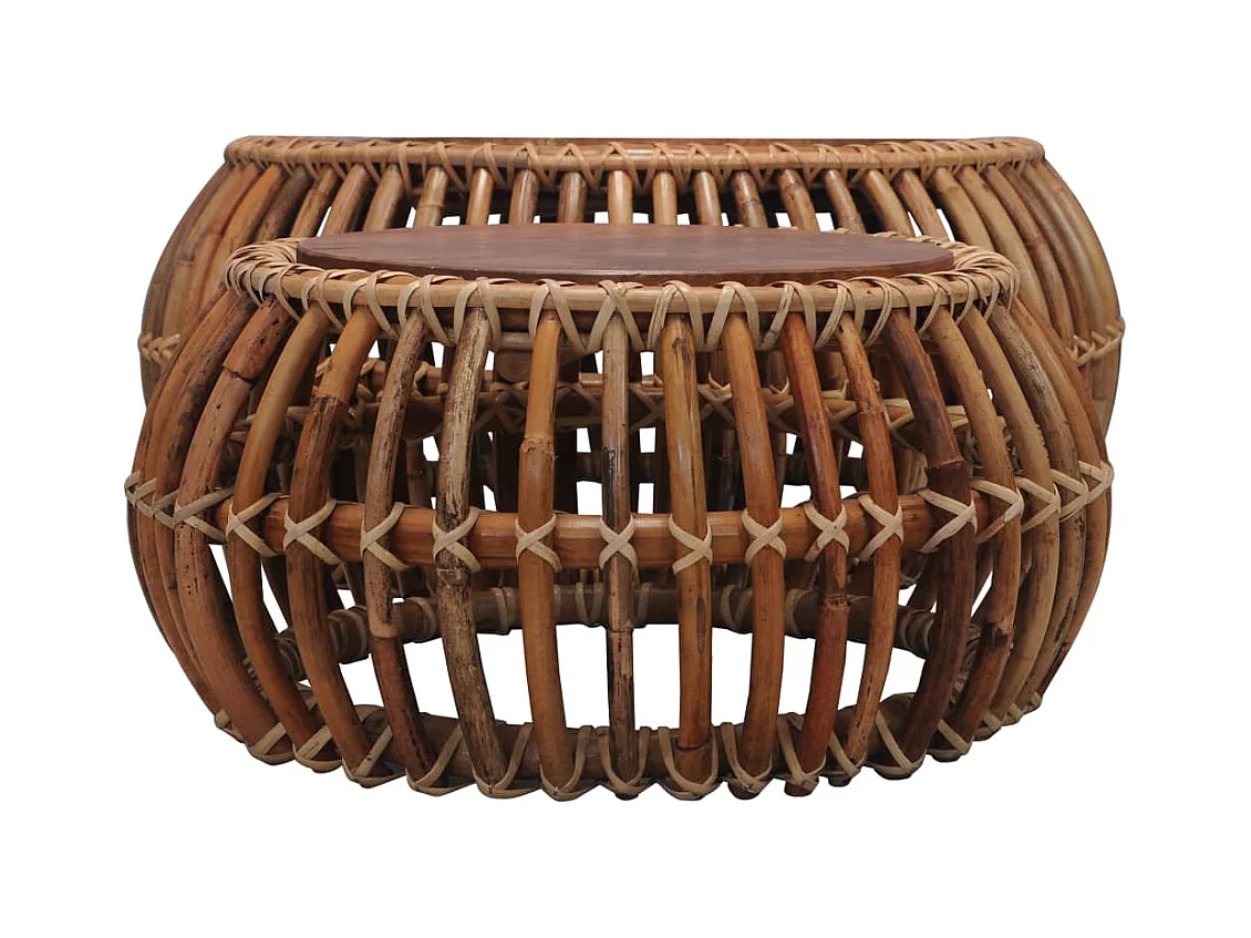 Tavolini da Salotto 2 pz in Rattan Naturale