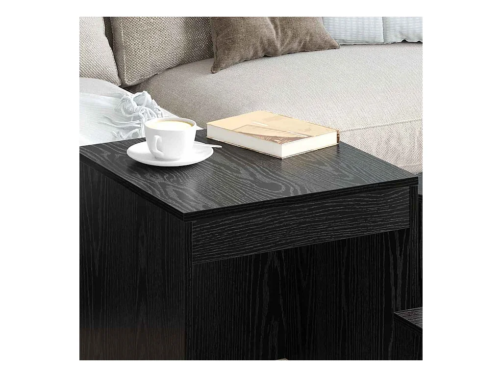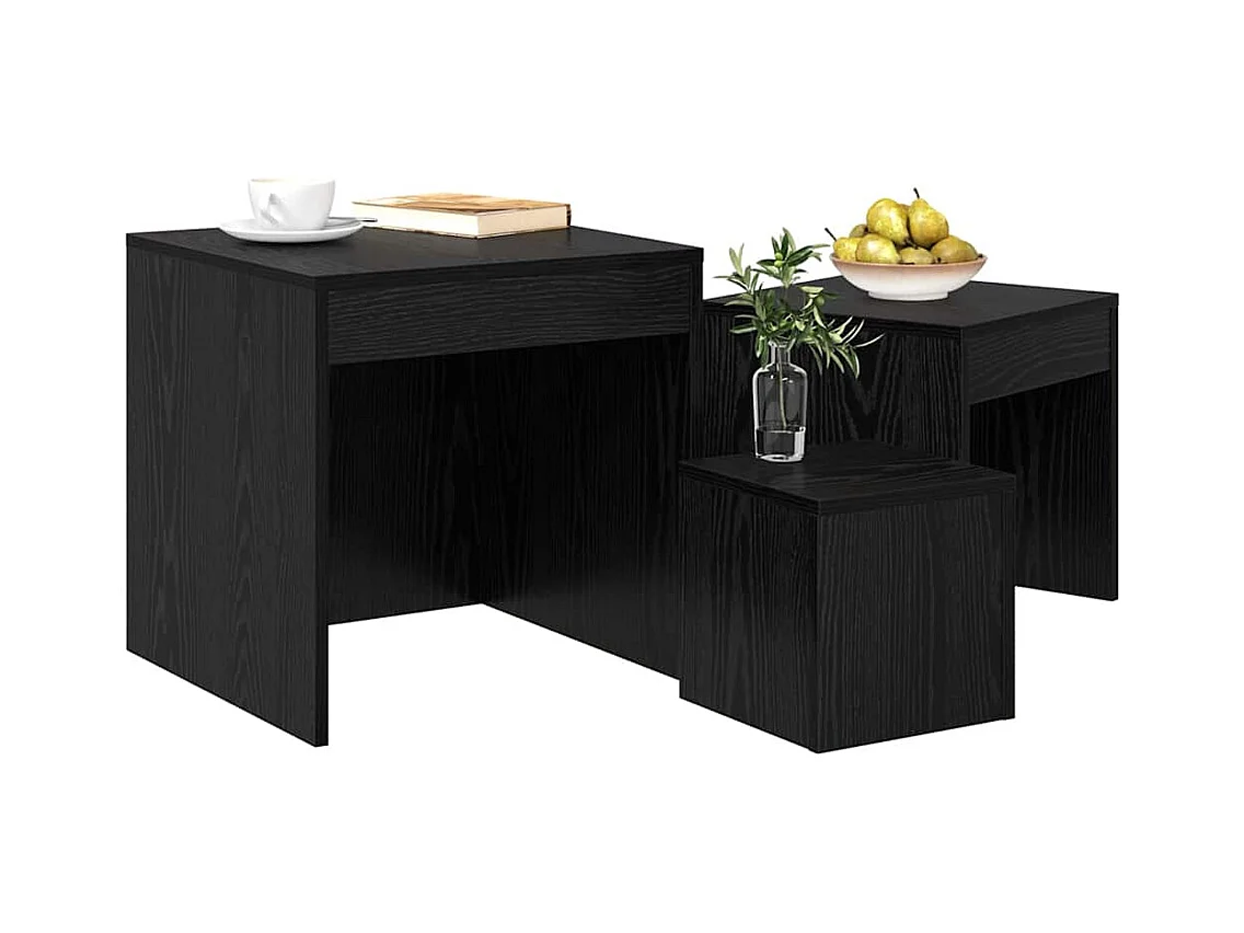Set di tavolini impilabili da 3 pezzi, truciolato nero