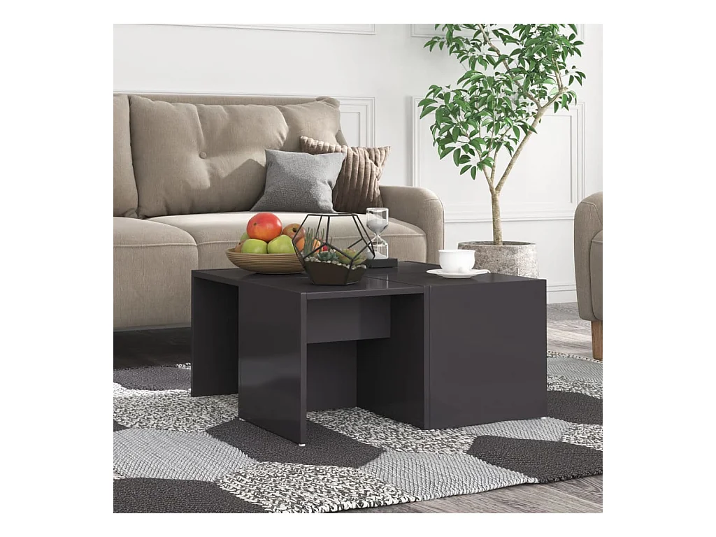 Tavolini da caffè in legno ingegnerizzato grigio lucido da 2 pezzi