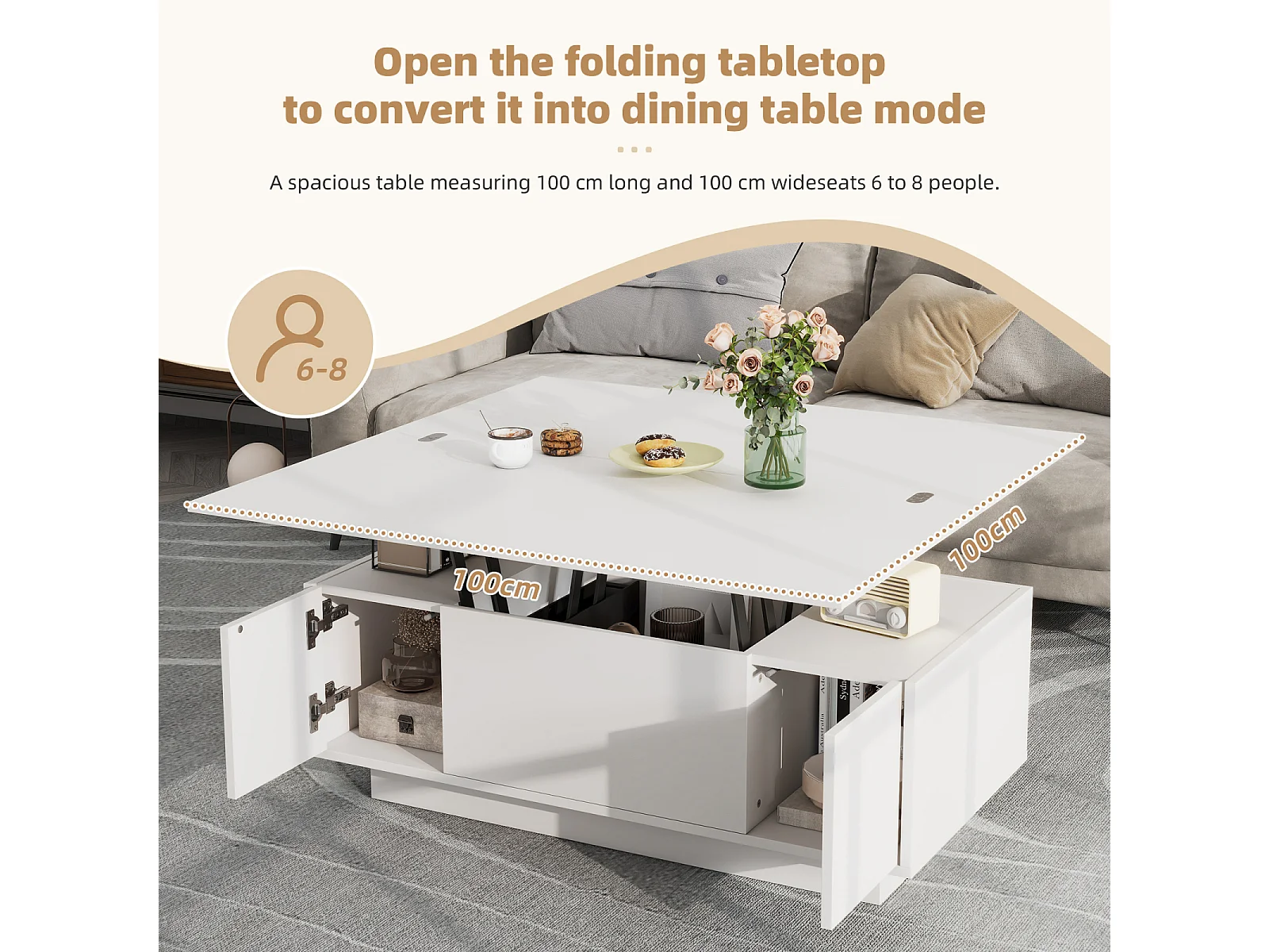 Tavolini da caffè con 2 ripiani sollevabili, tavolo 3 in 1, 2 ante, per soggiorno, bianco, 100 x 50 x 55 cm