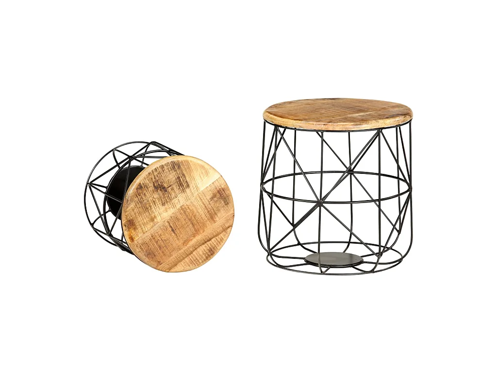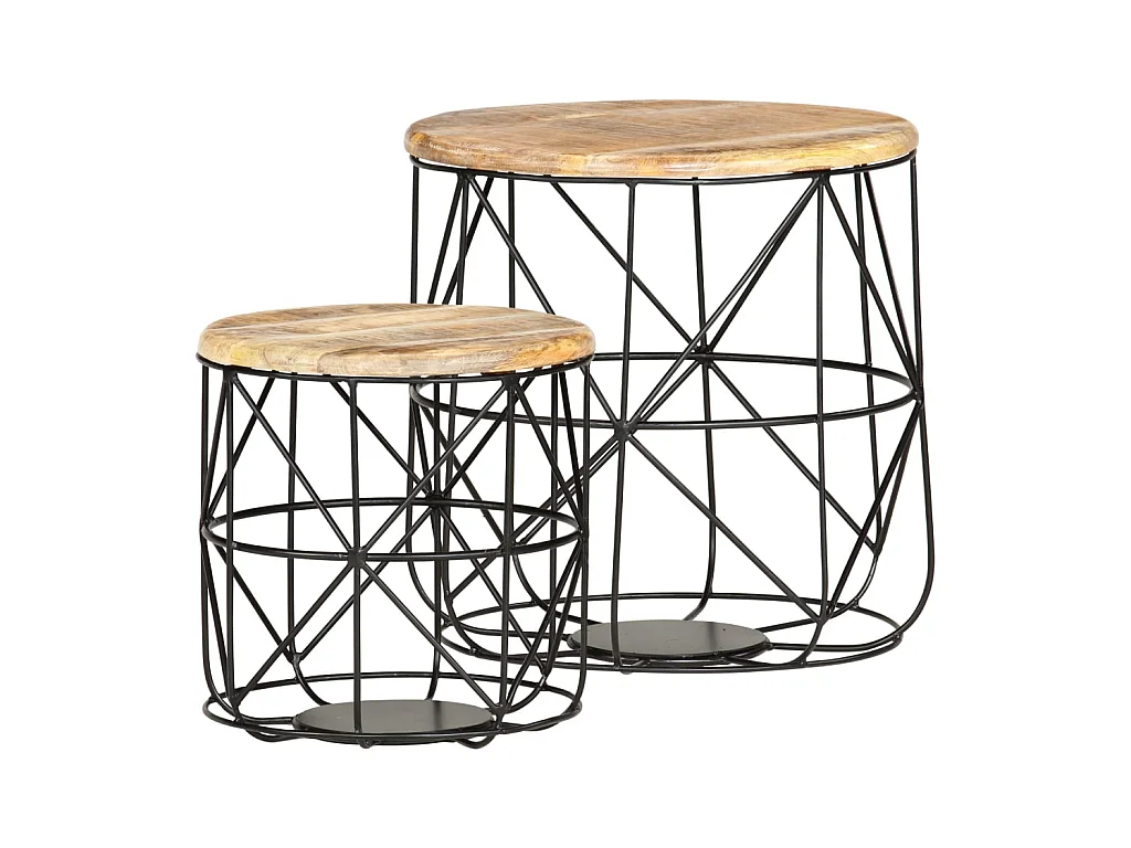 Tavolini da caffè dorati 2 pezzi in legno massello di mango