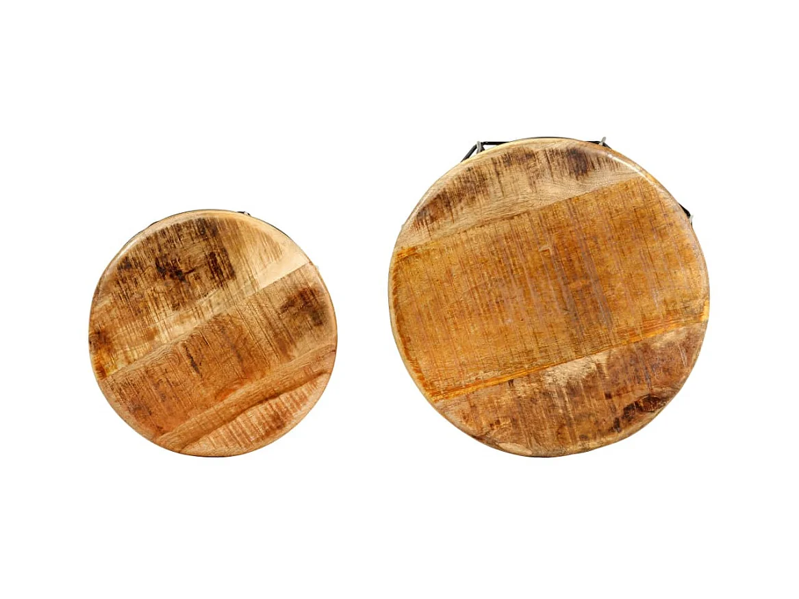 Tavolini da bar a forma di tamburo, 3 pezzi, in legno massello di recupero