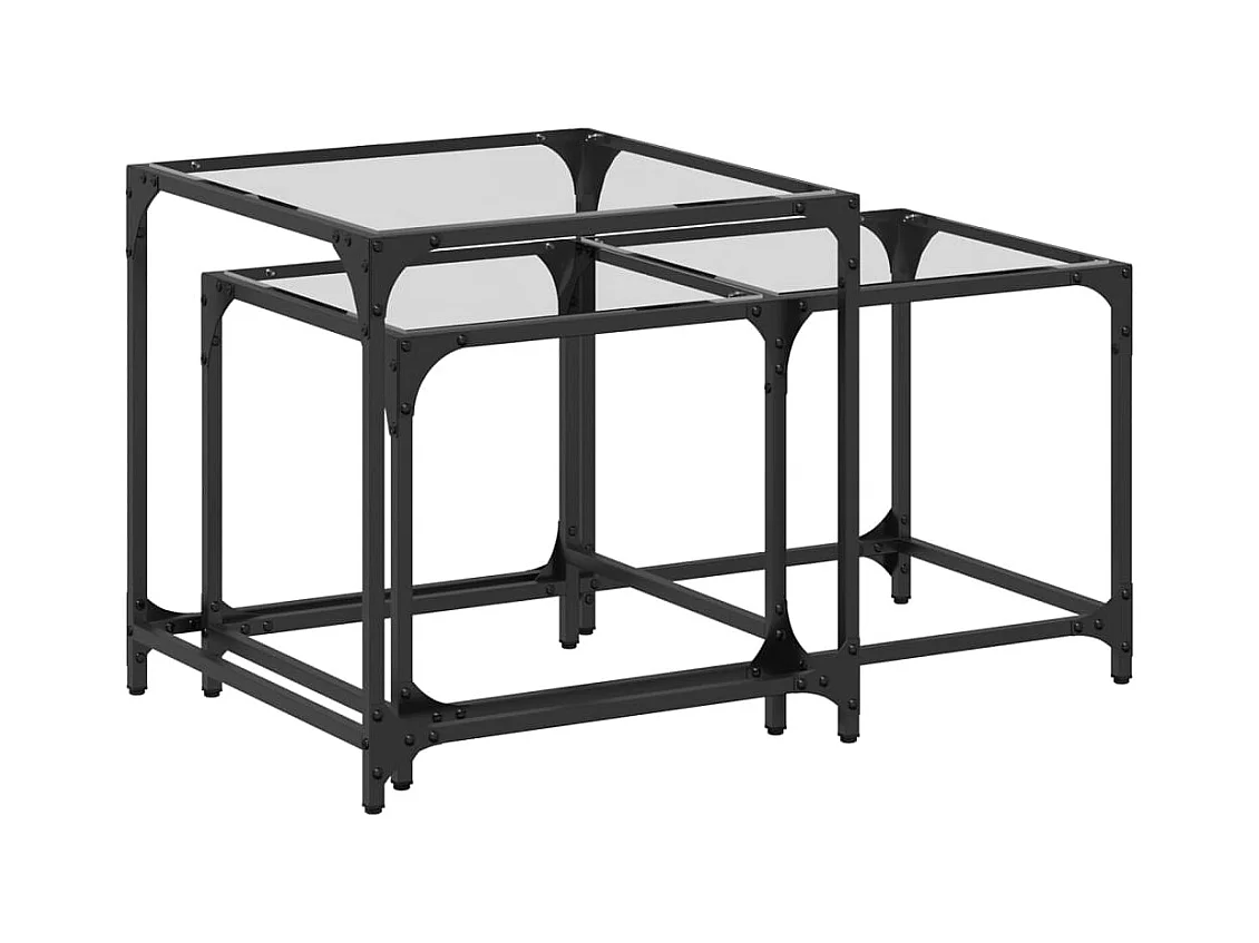 Tavolini con piano in vetro trasparente 2 pezzi in acciaio