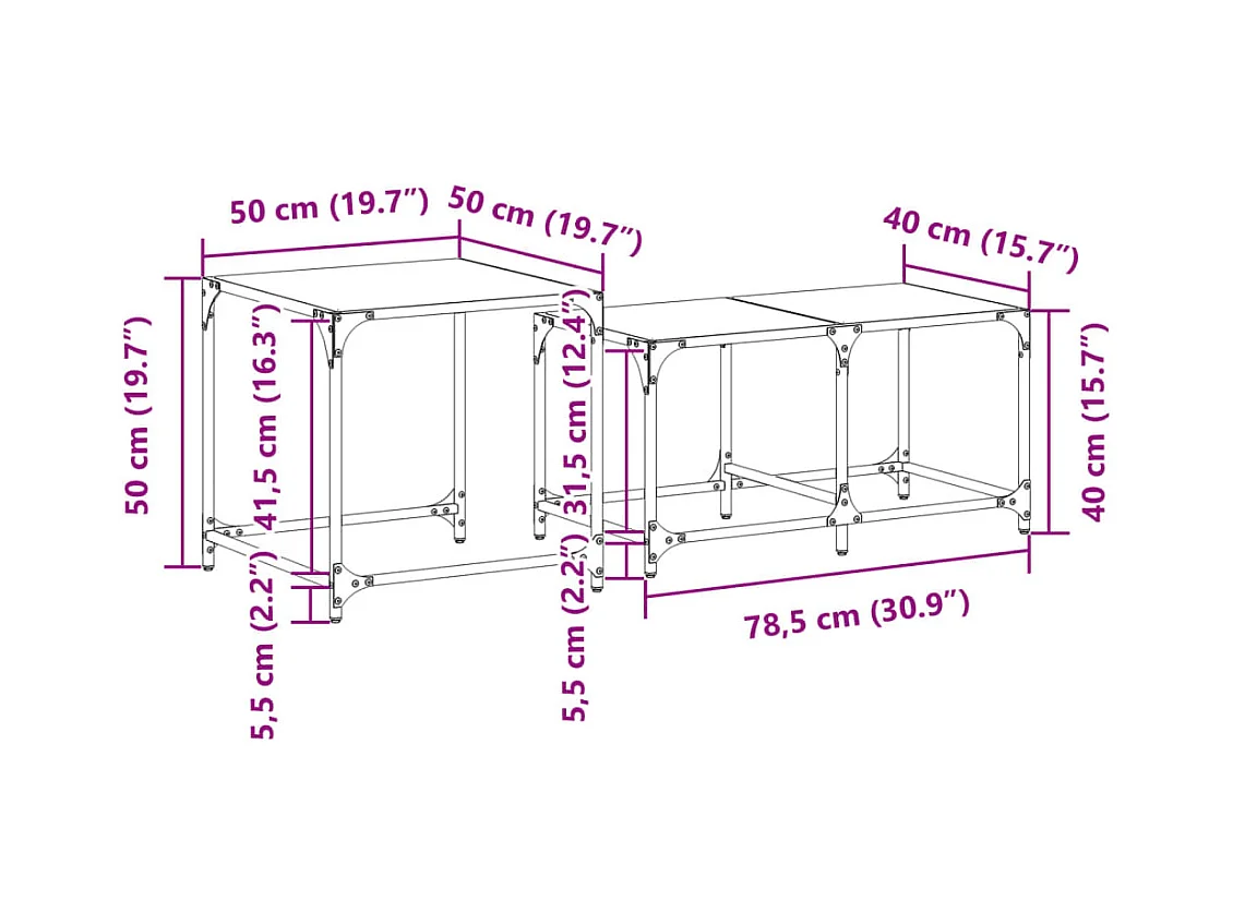 Tavolini da caffè impilabili 2 pezzi piano in vetro trasparente acciaio