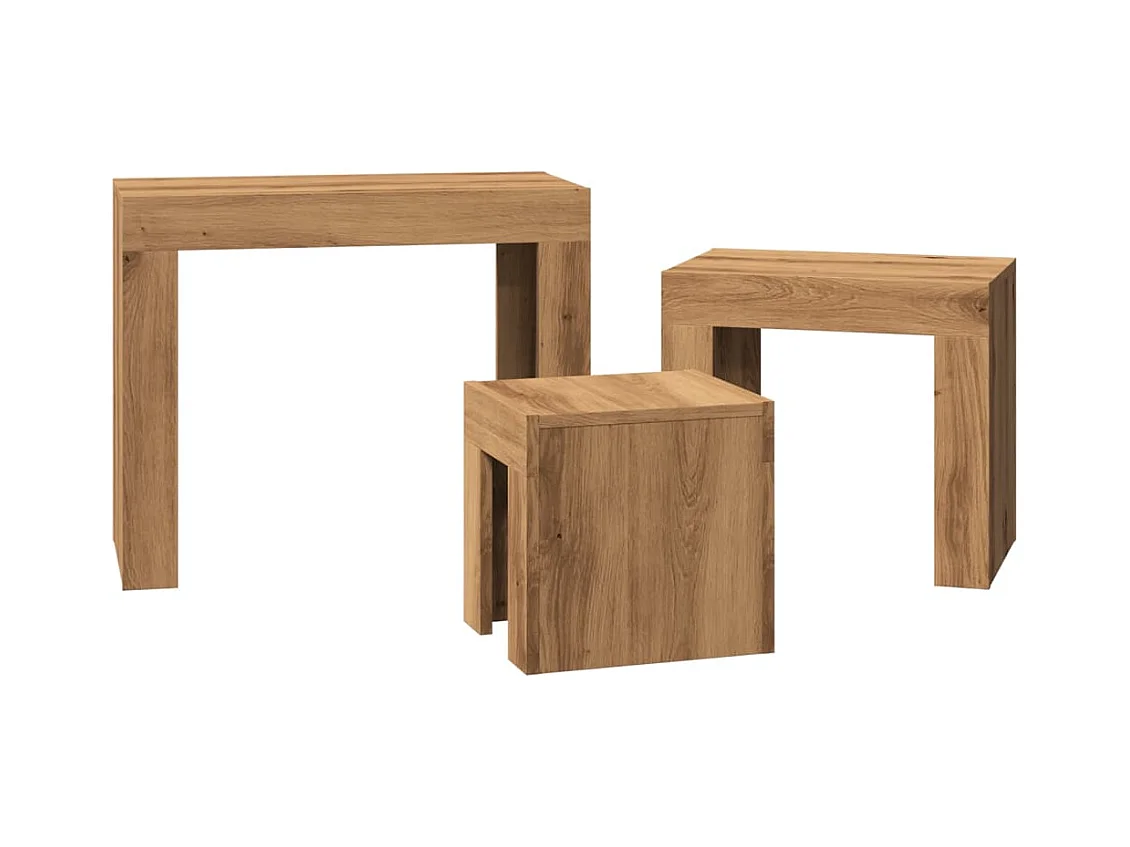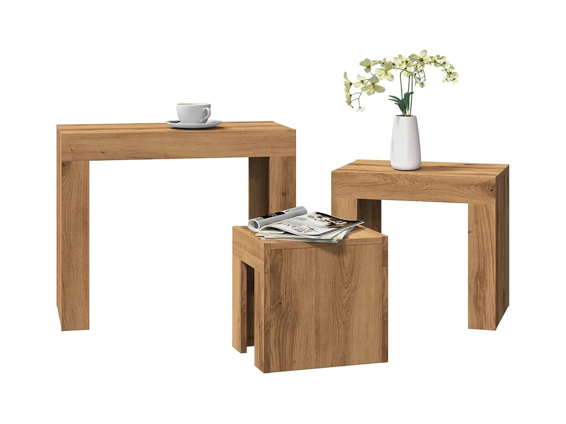 Tavolini da caffè impilabili 3 pezzi in rovere lavorato a mano in legno ingegnerizzato