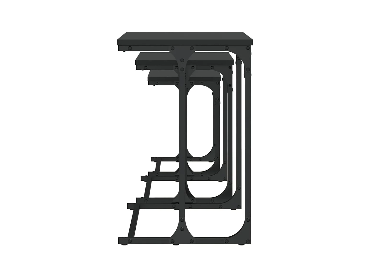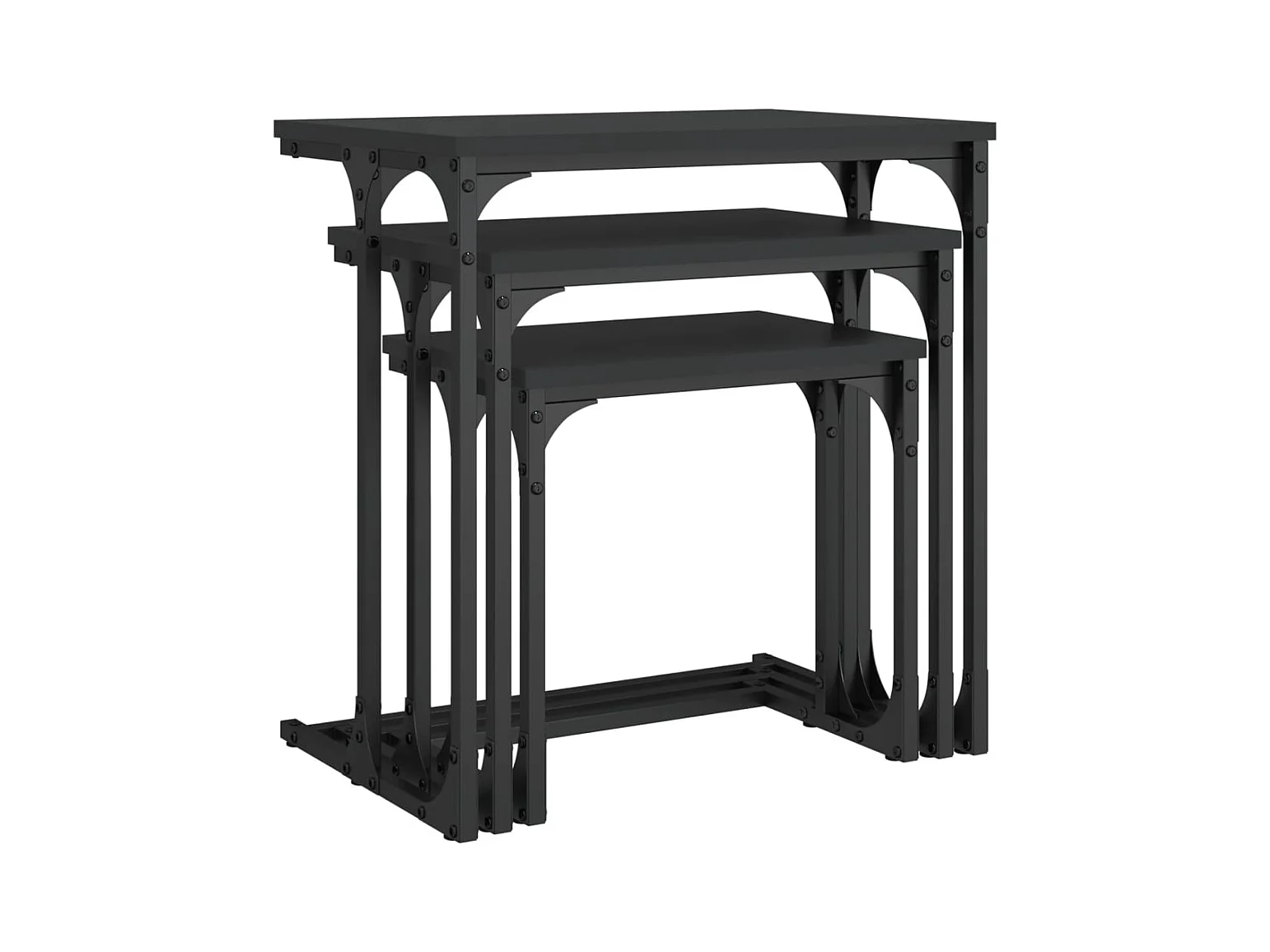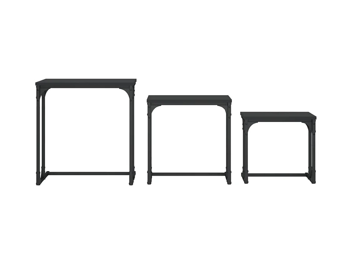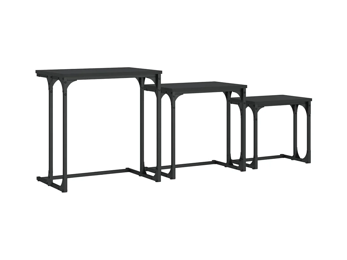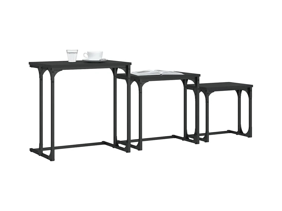 Tavolini da caffè impilabili a 3 pezzi, neri, in legno ingegnerizzato
