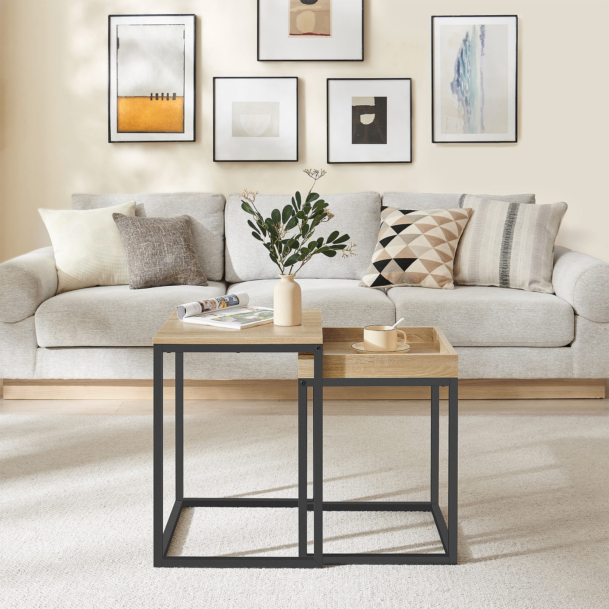 Tavolini da caffè quadrati Valora, set da 2 – piano in rovere Sonoma con gambe nere