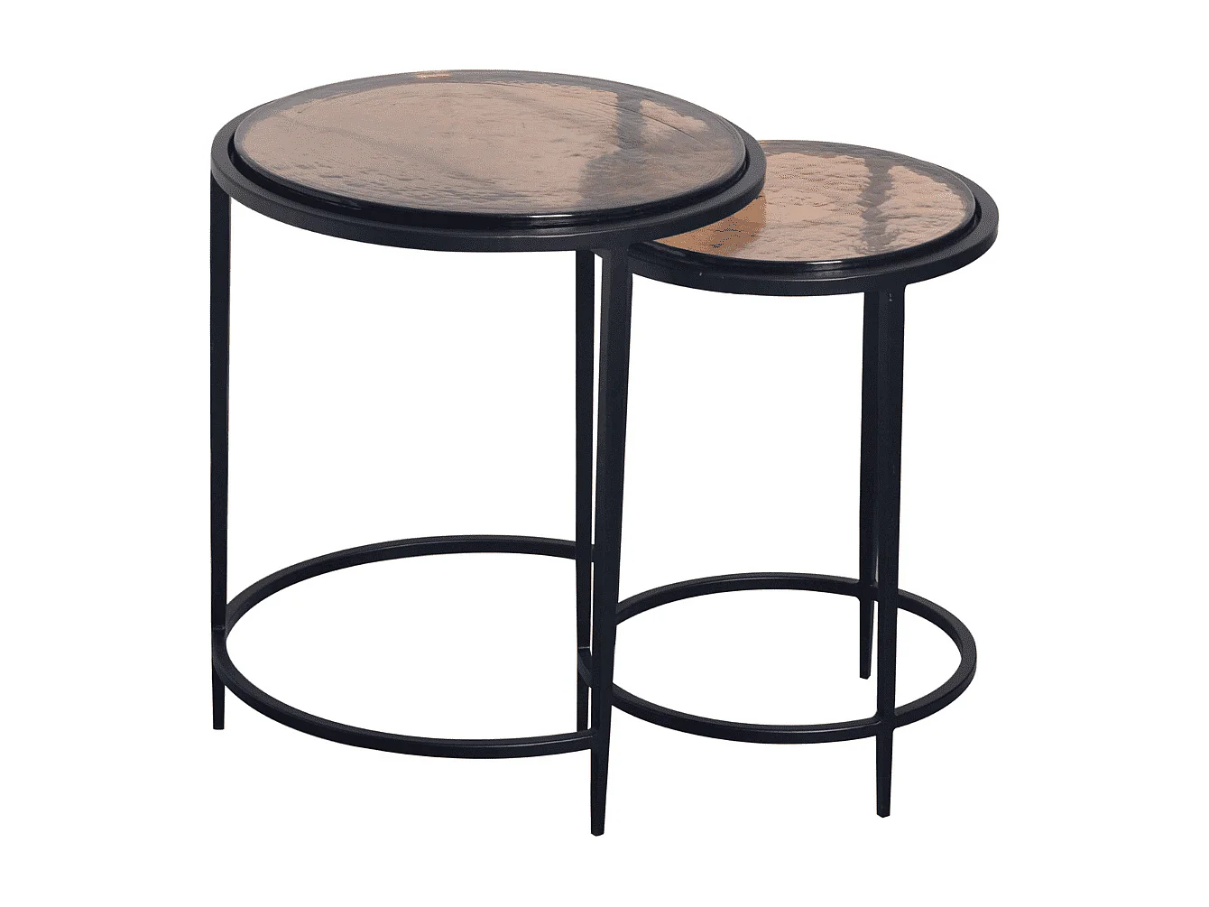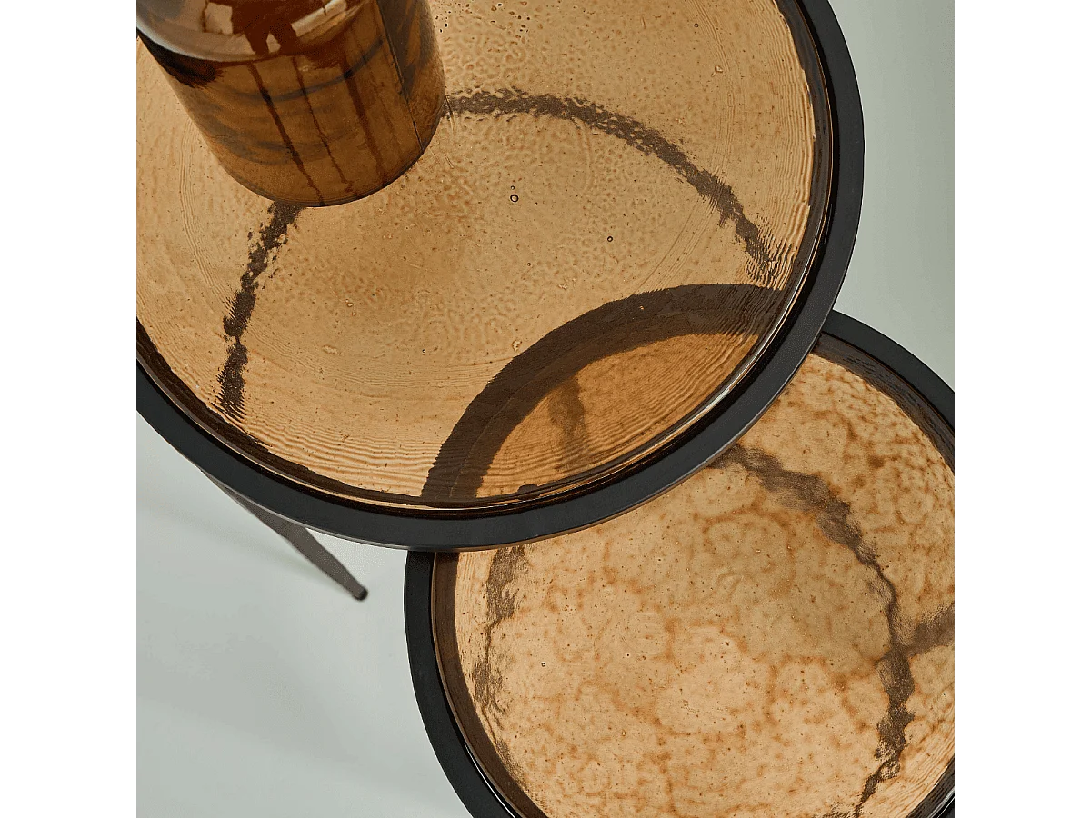 Tavolini da divano impilabili in vetro fumé e metallo nero D44 cm - IGLOO