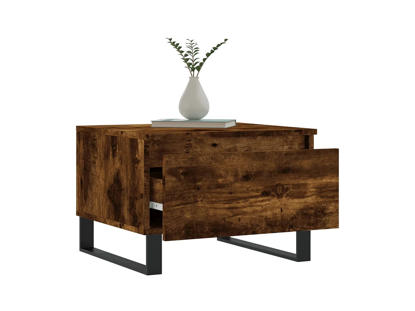 Tavolino Salotto Rovere Fumo 100x50x35 cm Multistrato e Metallo