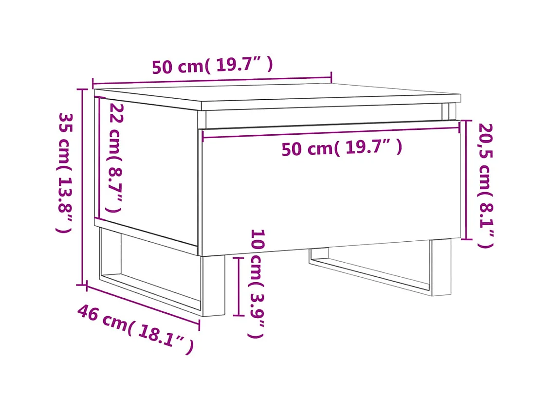 Tavolino Salotto Rovere Sonoma 100x50x35 cm Multistrato Metallo