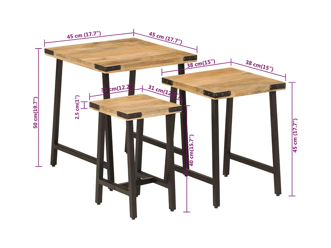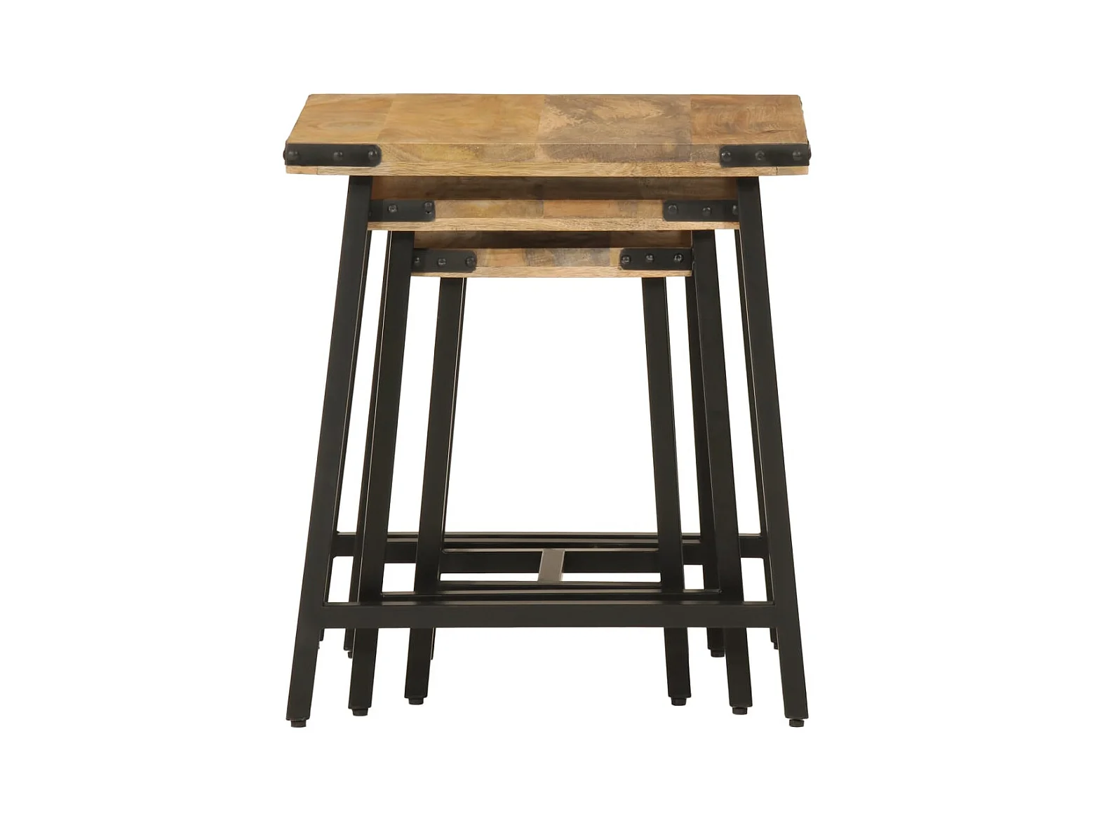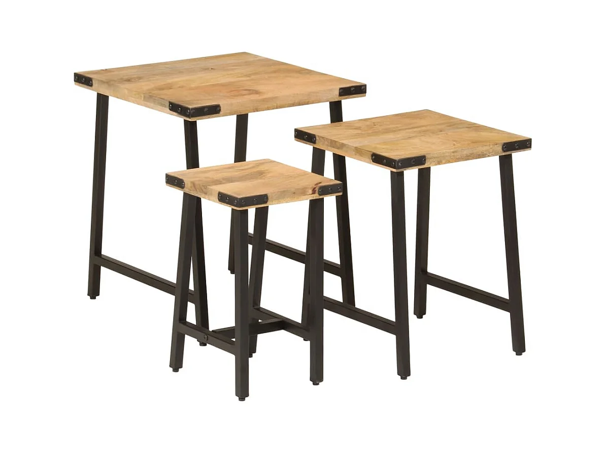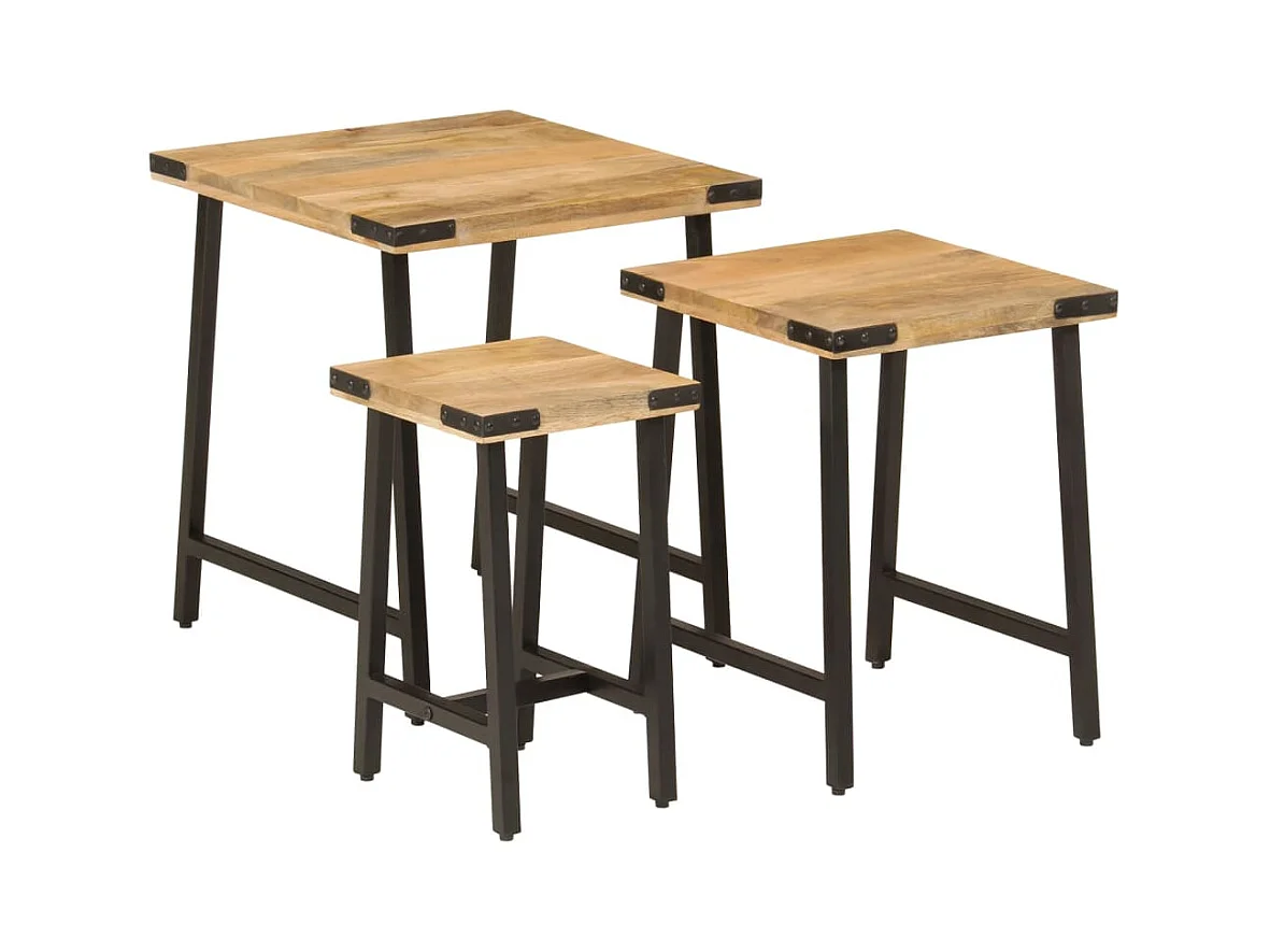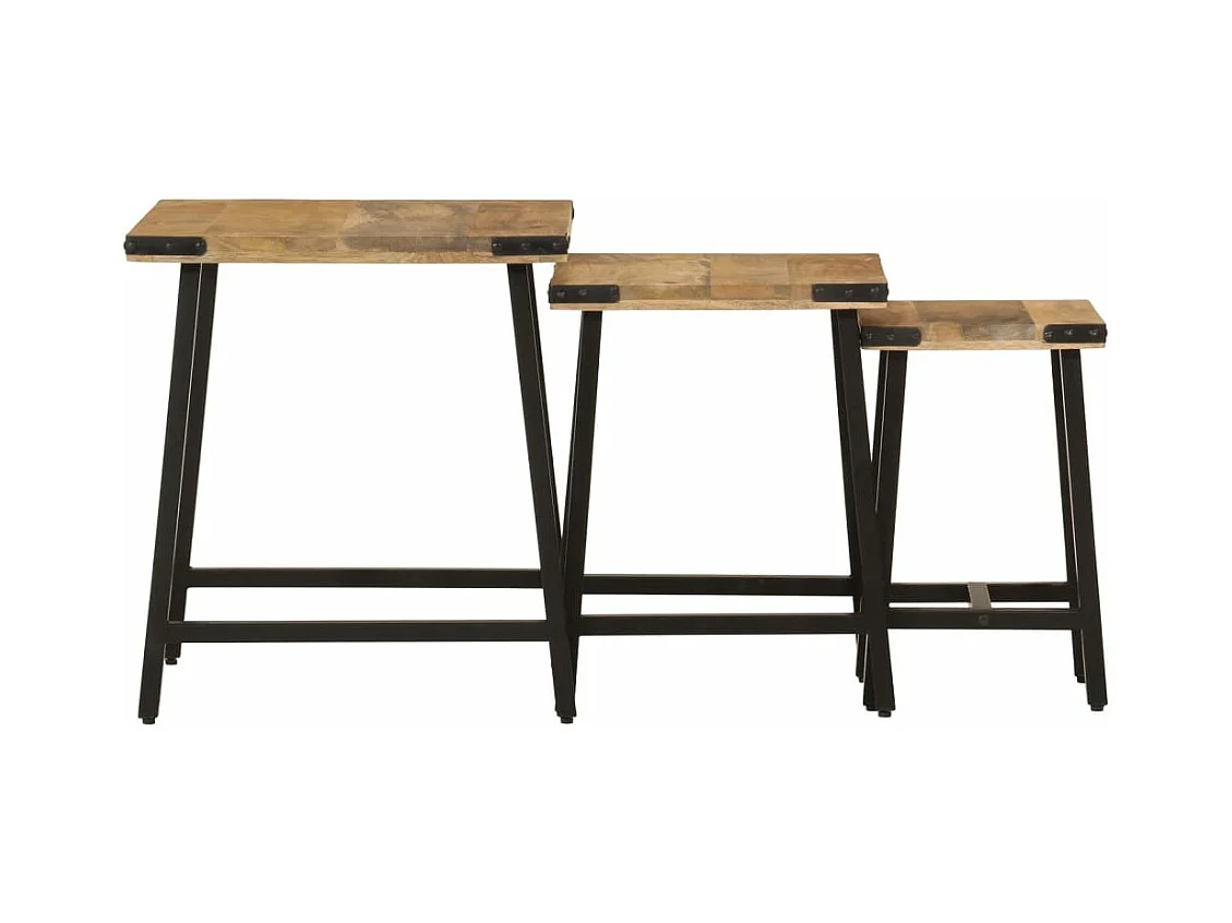 Tavolini impilabili 3 pezzi in legno massello di mango e ferro