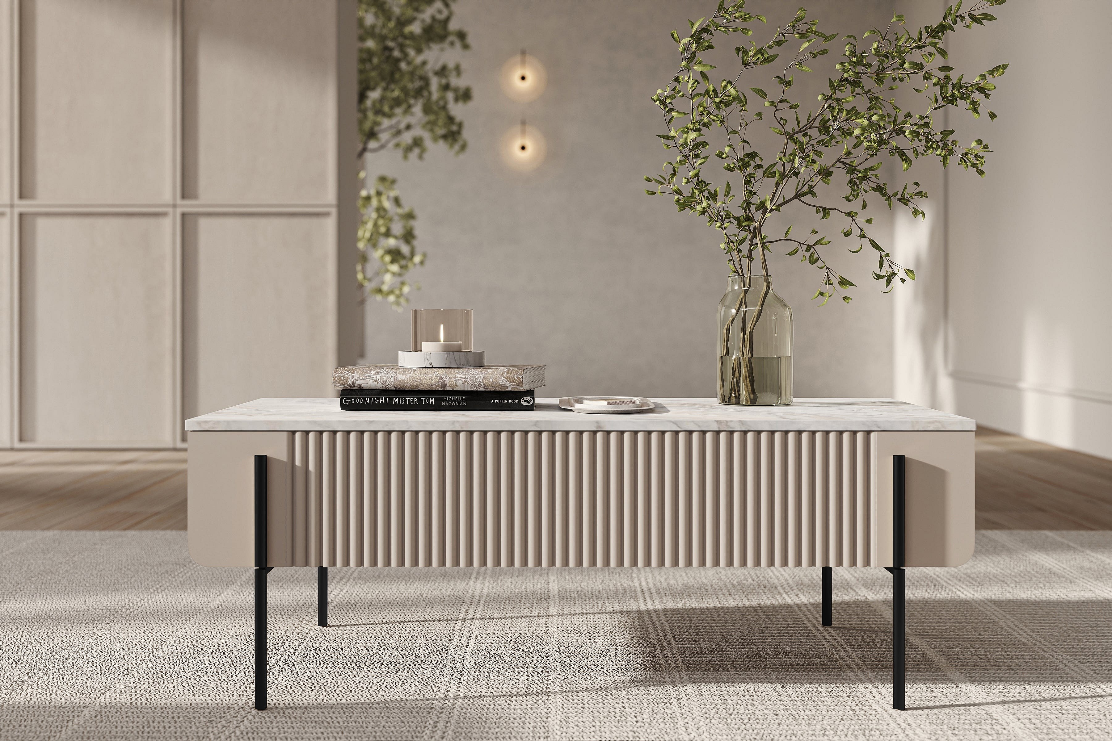 Tavolino 2 cassetti con piede in metallo cashmere 100x40 cm