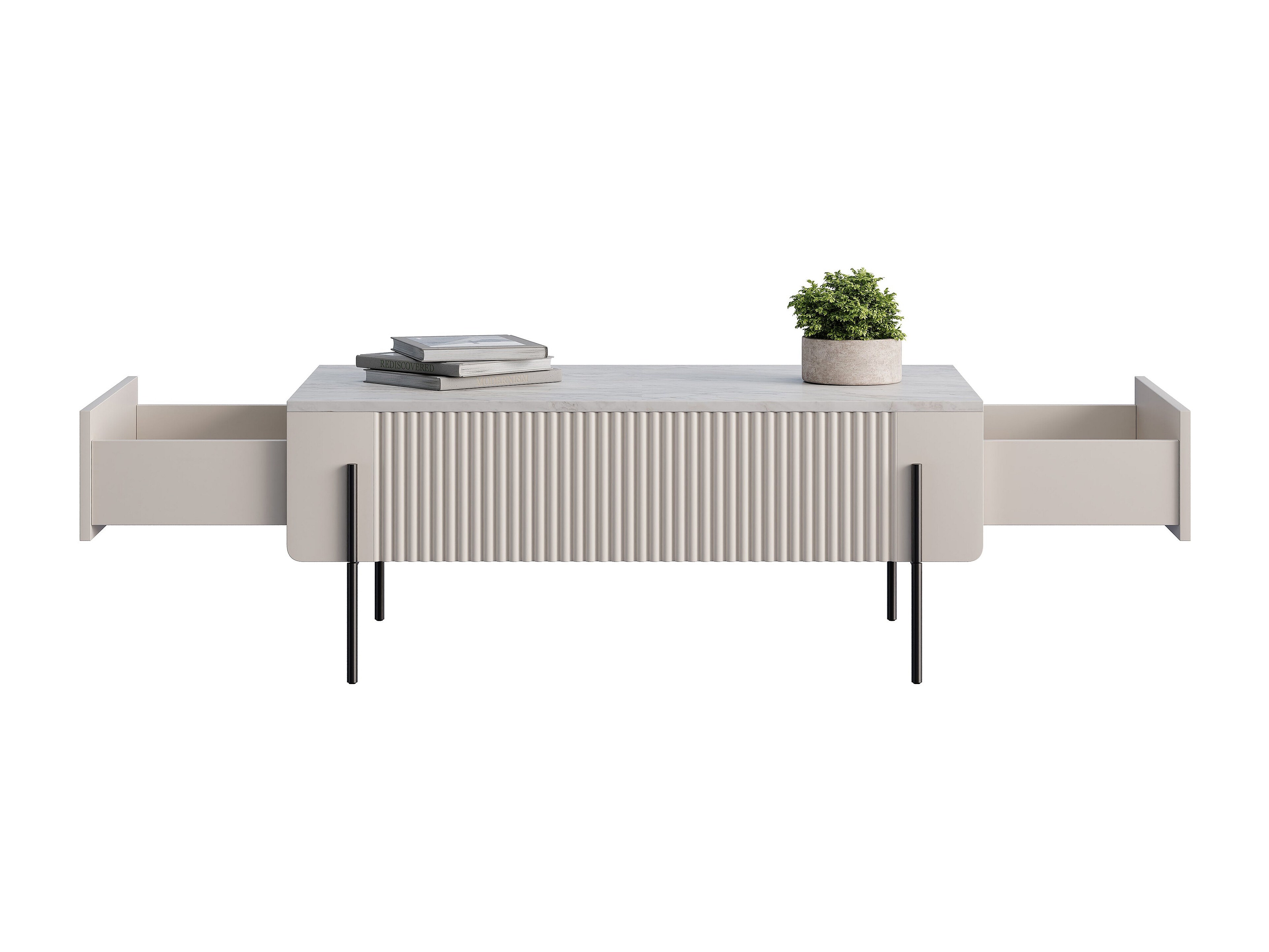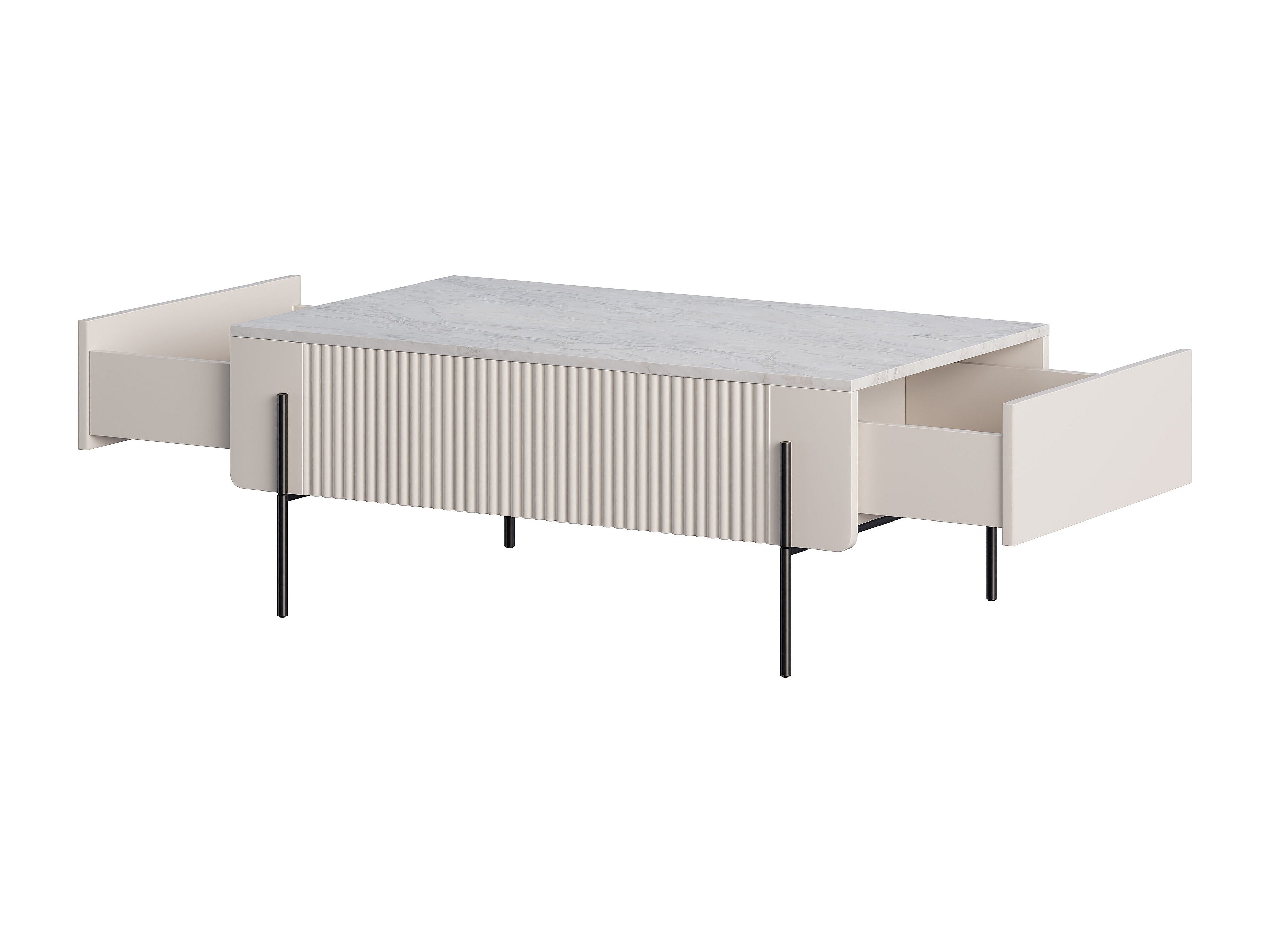 Tavolino 2 cassetti piede in metallo nero cashmere 120x60 cm