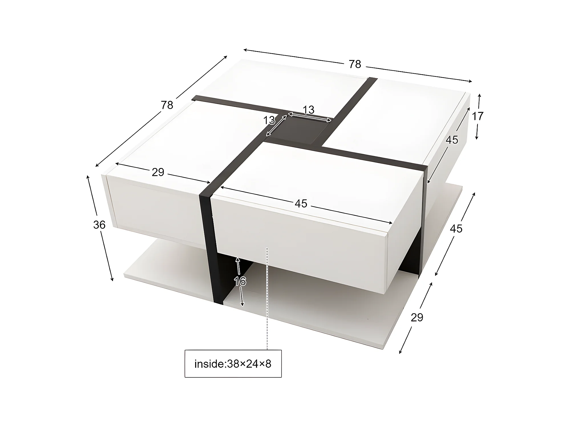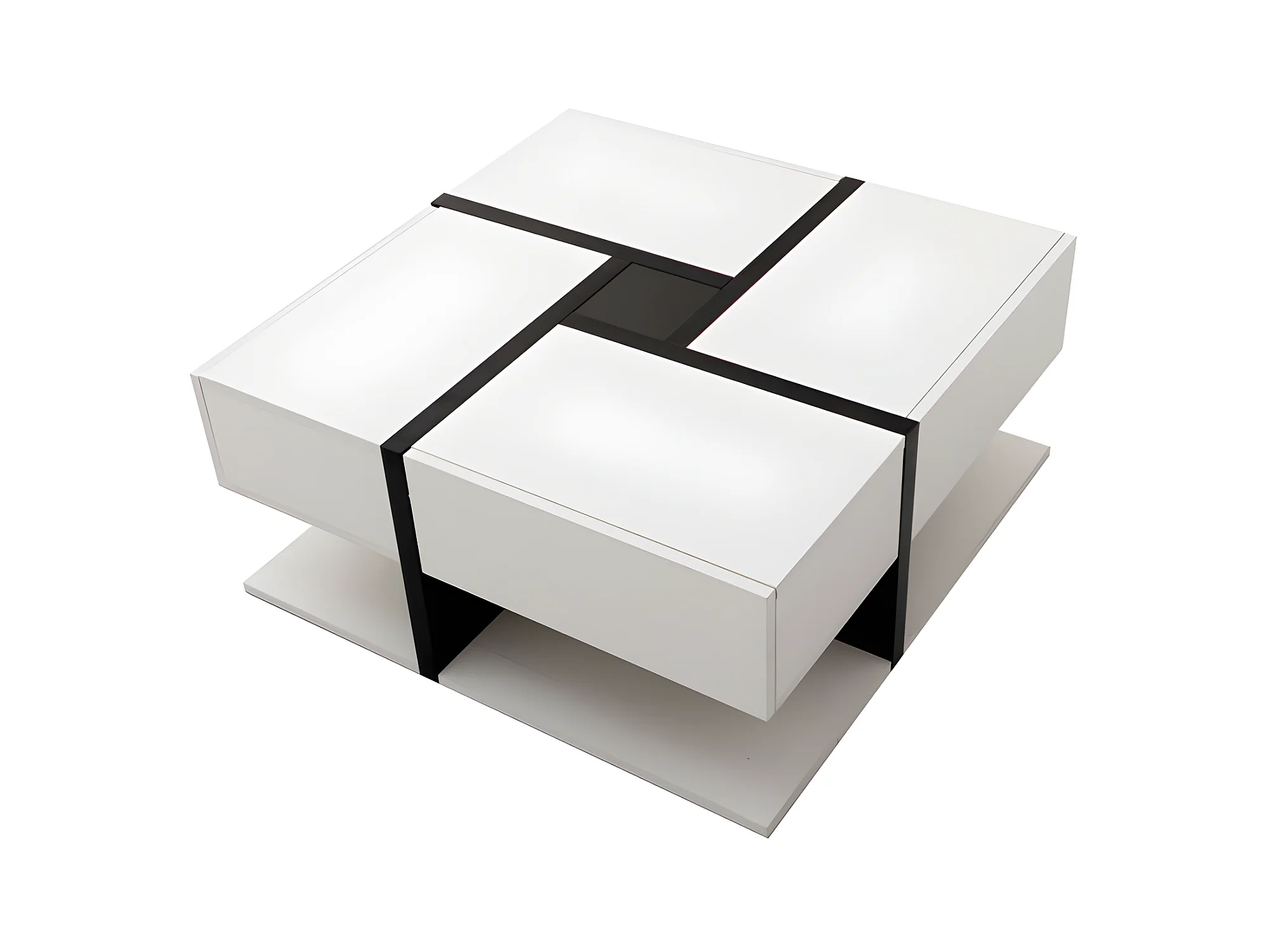 Tavolino - 4 cassetti - spazio portaoggetti nella parte inferiore - 78x78x36 cm - Bianco e nero