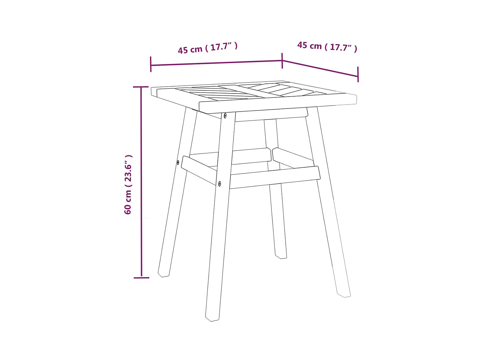 Tavolino 45x45x60 cm in Legno Massello di Acacia