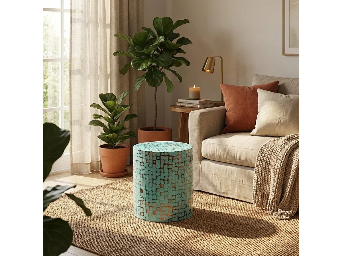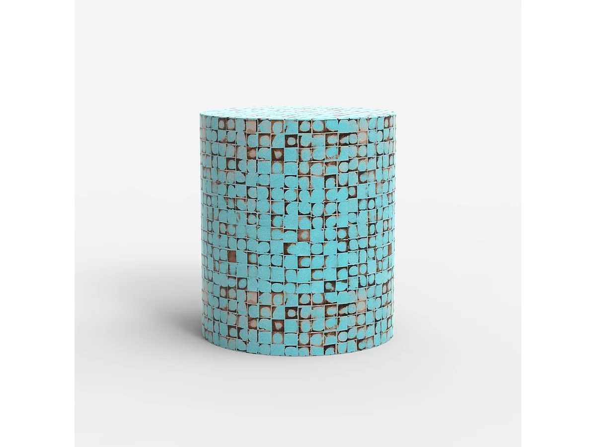 Tavolino a cilindro in legno intarsiato da salotto contemporaneo Hadi - Azzurro