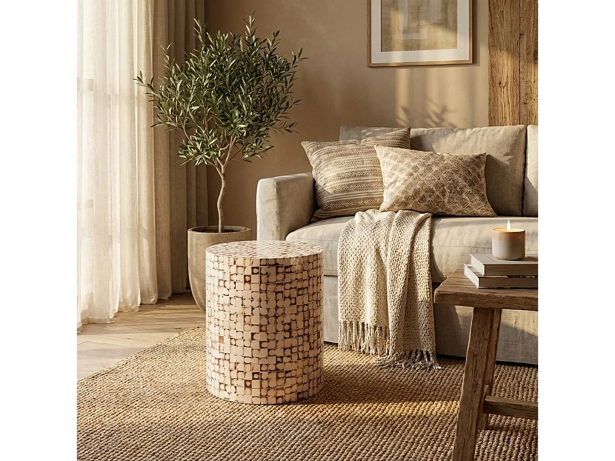 Tavolino a cilindro in legno intarsiato da salotto contemporaneo Hadi - Bianco
