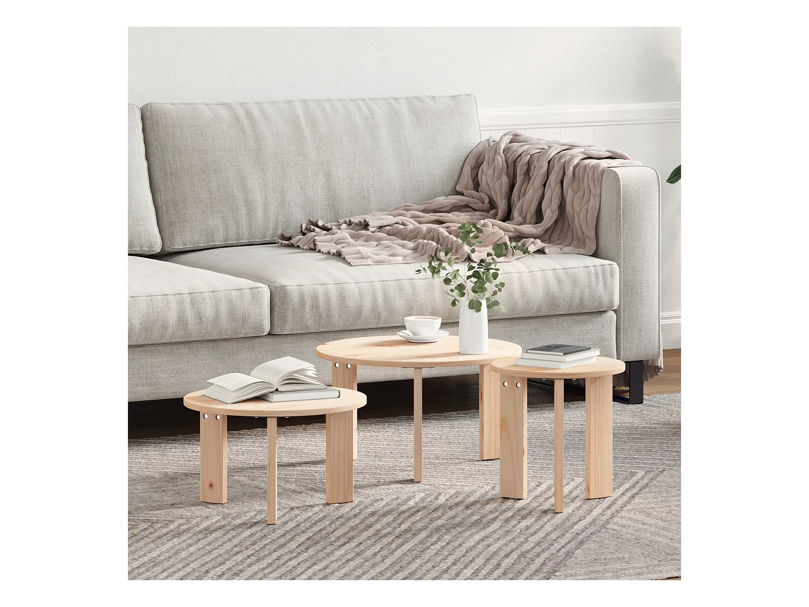 Tavolino basso 3 pezzi Naturale 47,5 x 47,5 x 27 cm