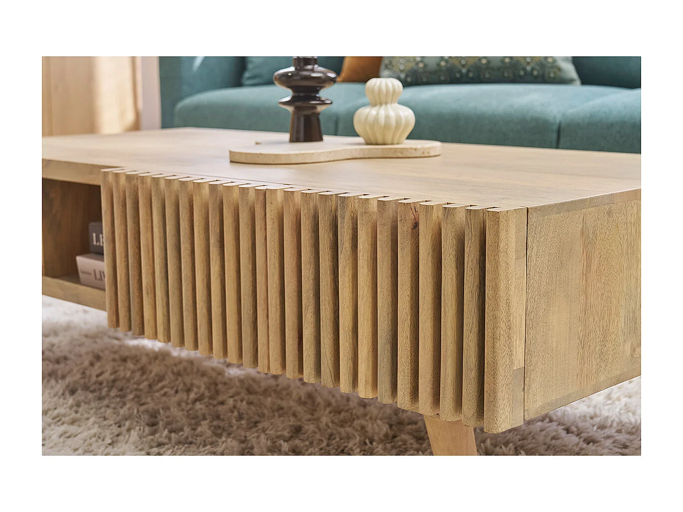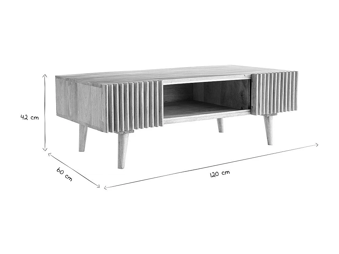 Tavolino basso in mango massiccio con ante scorrevoli ALBA