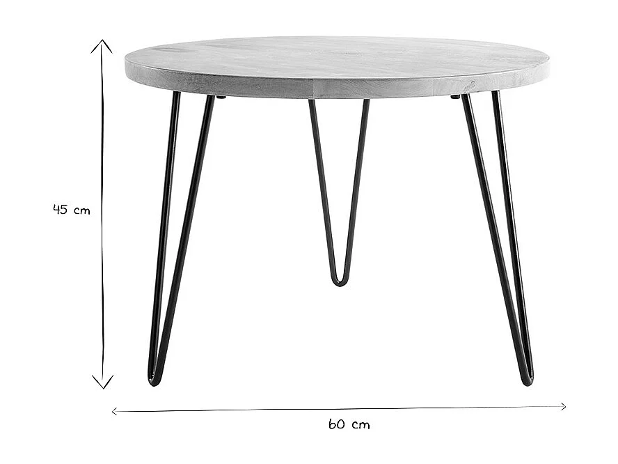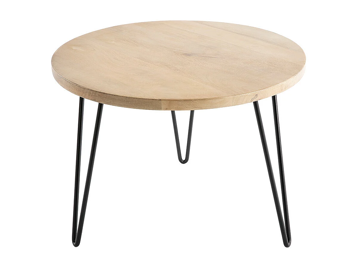 Tavolino basso rotondo in mango piedi metallo VIBES