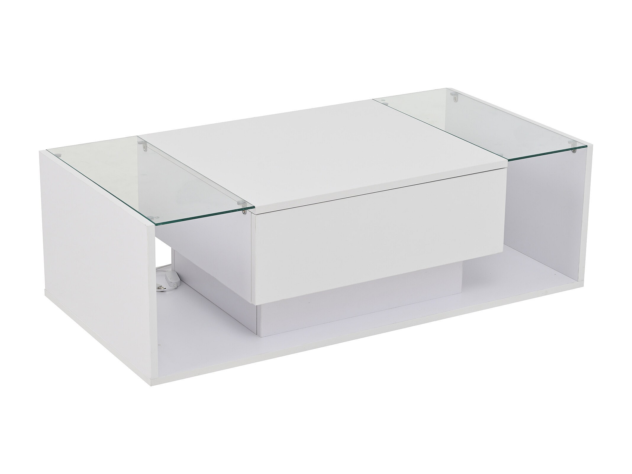 Tavolino bianco - con 2 cassetti e piano sollevabile idraulico - illuminazione a LED - per soggiorno e sala da pranzo