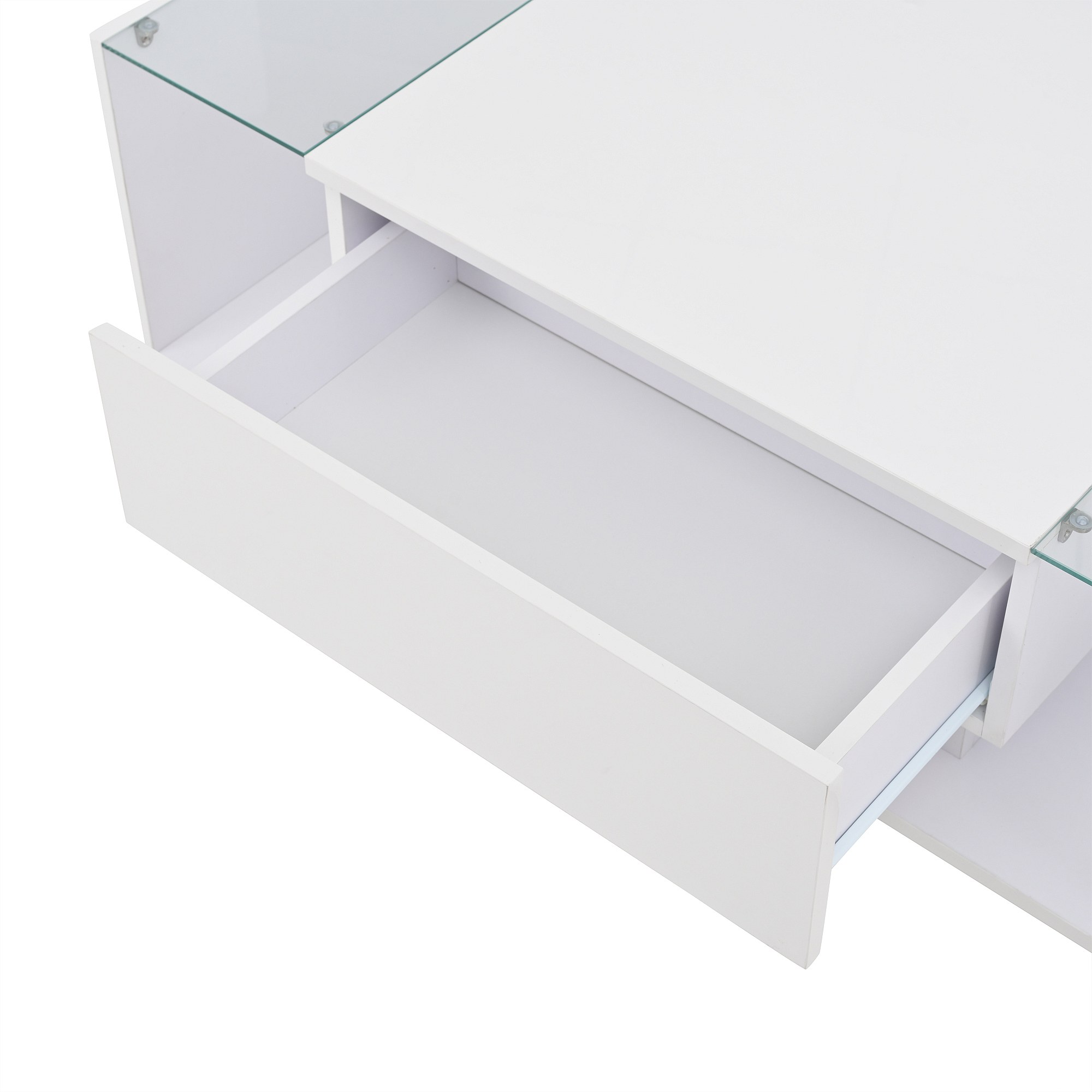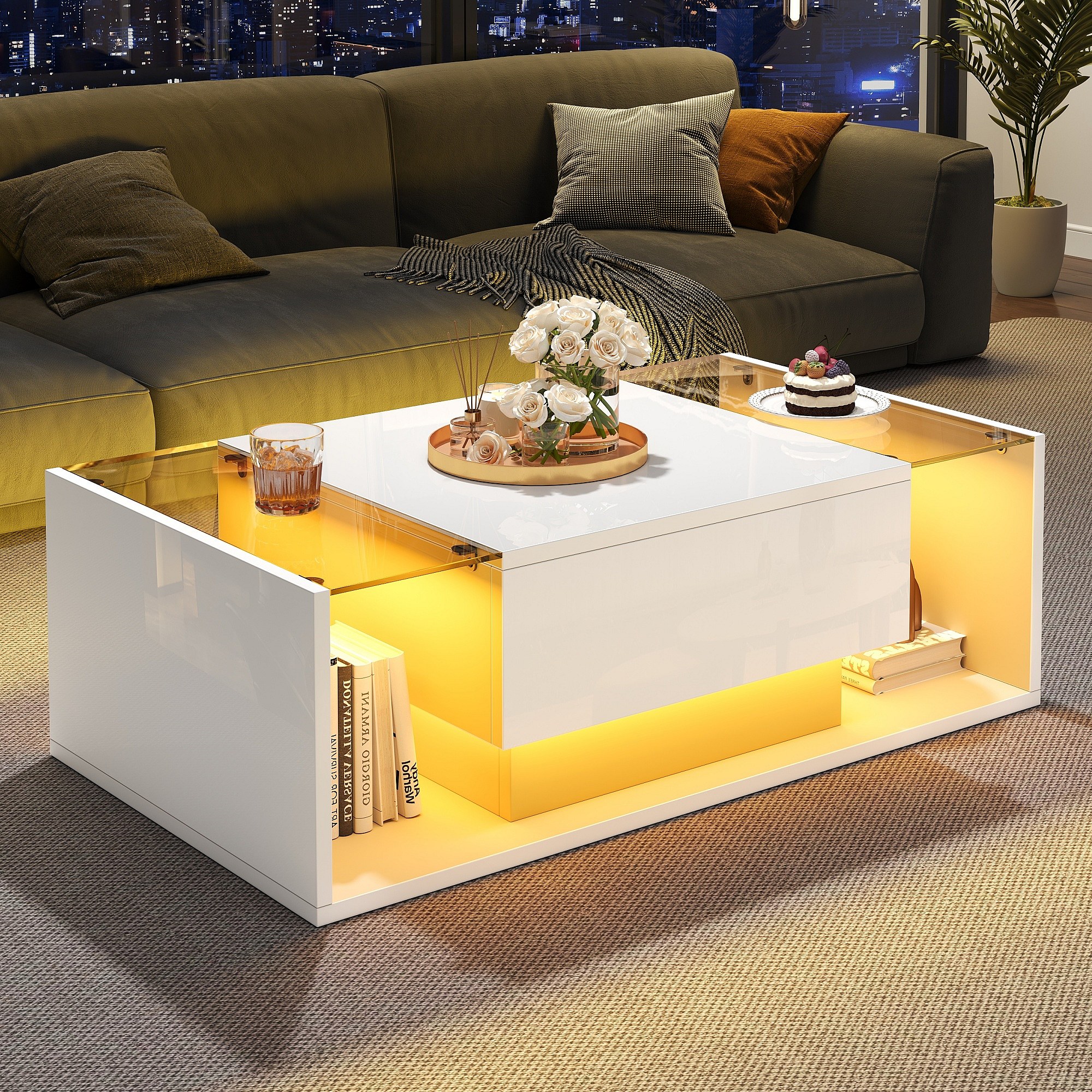 Tavolino da caffè bianco con luci a LED, 1 cassetto e vano portaoggetti aperto, per soggiorno e ufficio