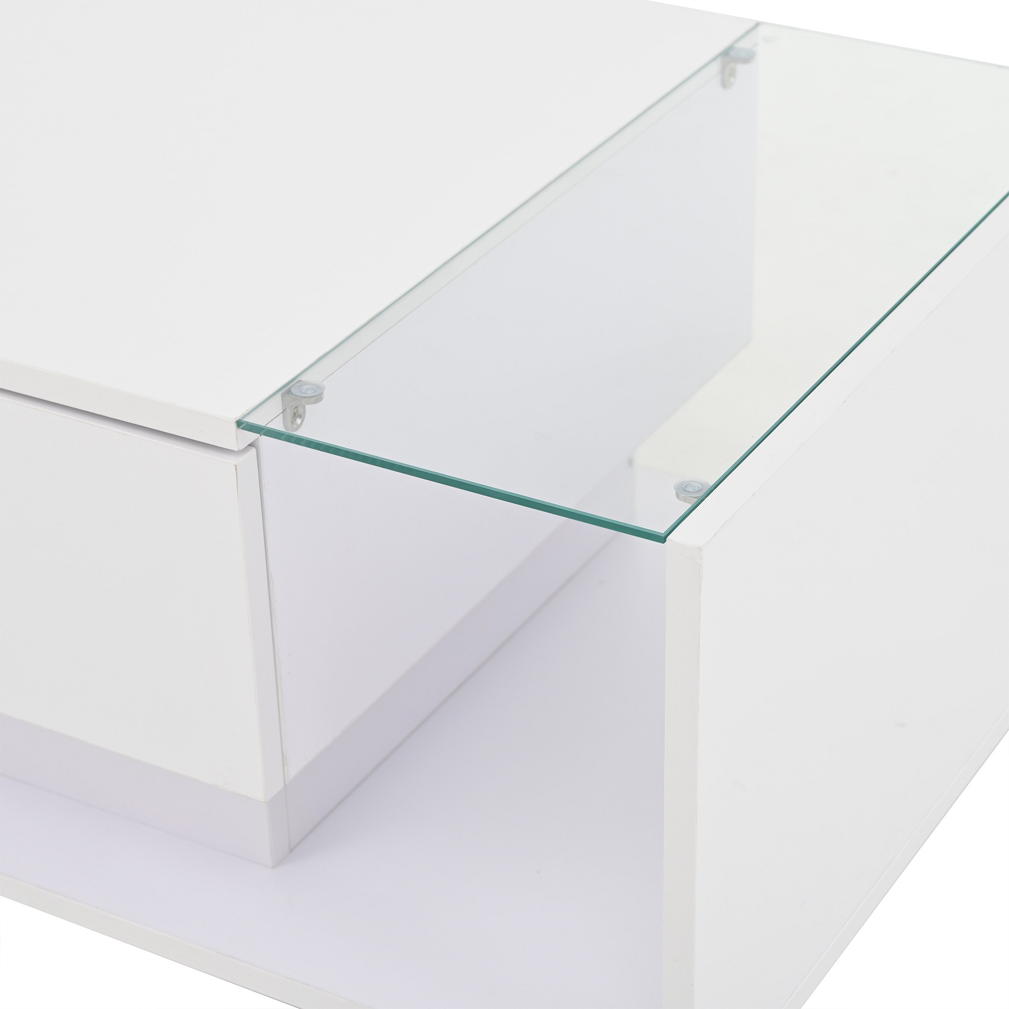 Tavolino da caffè bianco lucido con 2 cassetti e vani a giorno, illuminazione a LED - 95x50x42,5 cm