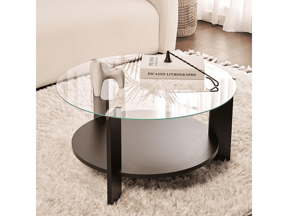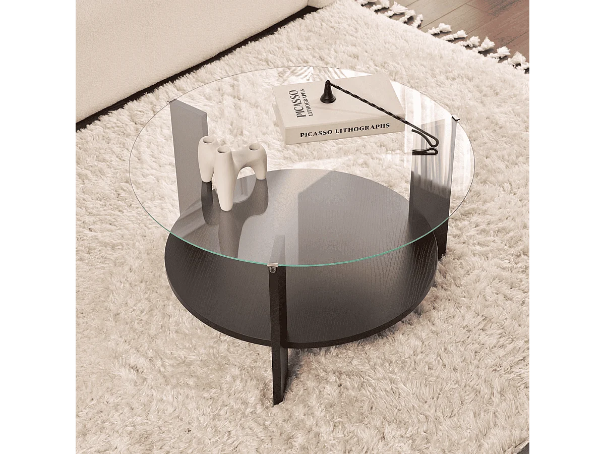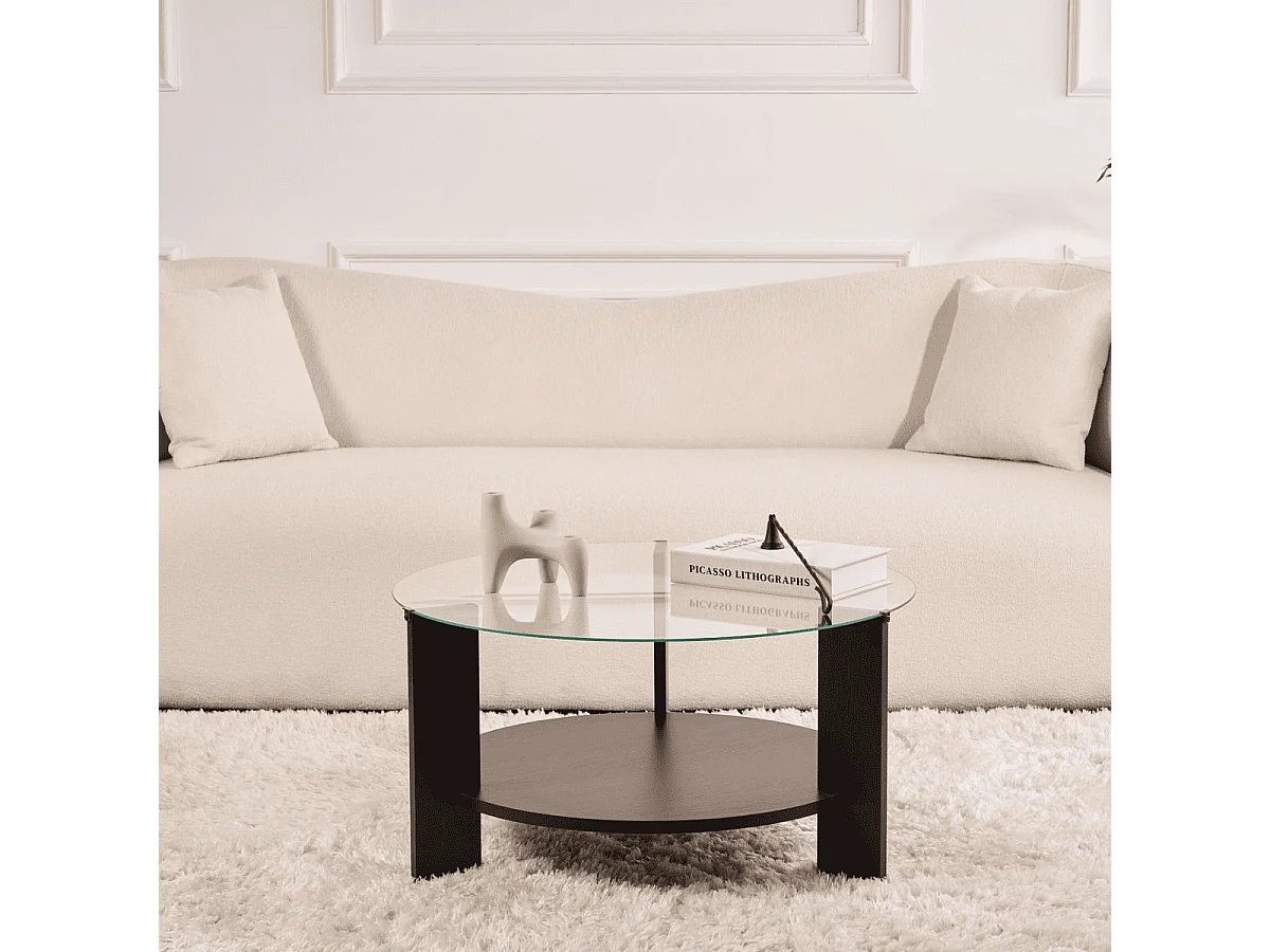 Tavolino con 2 ripiani, di cui uno in vetro temperato Ø75 cm - CLARA