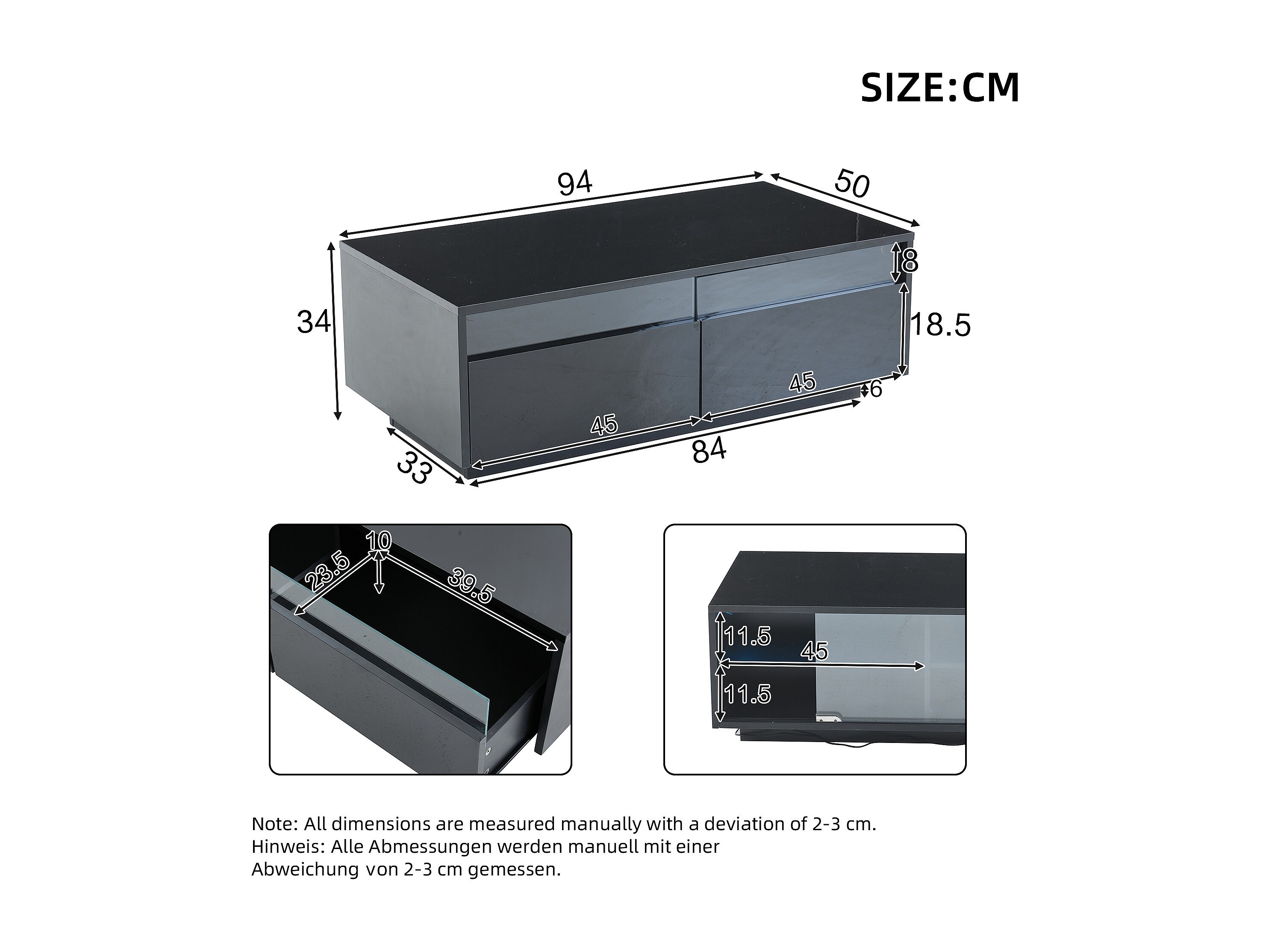 Tavolino da caffè nero lucido - Tavolino da caffè con 2 cassetti e illuminazione a LED - pannello porta a ribalta