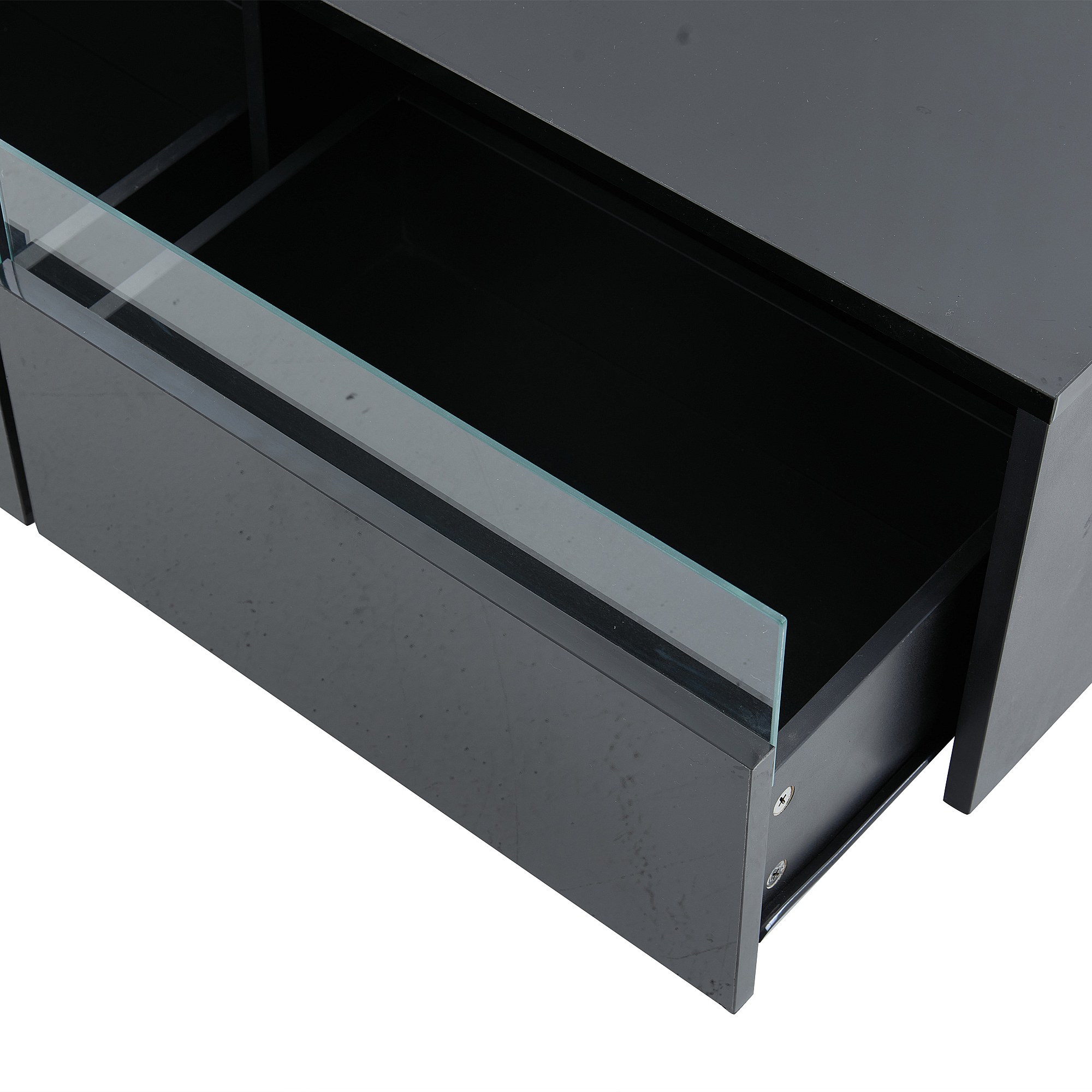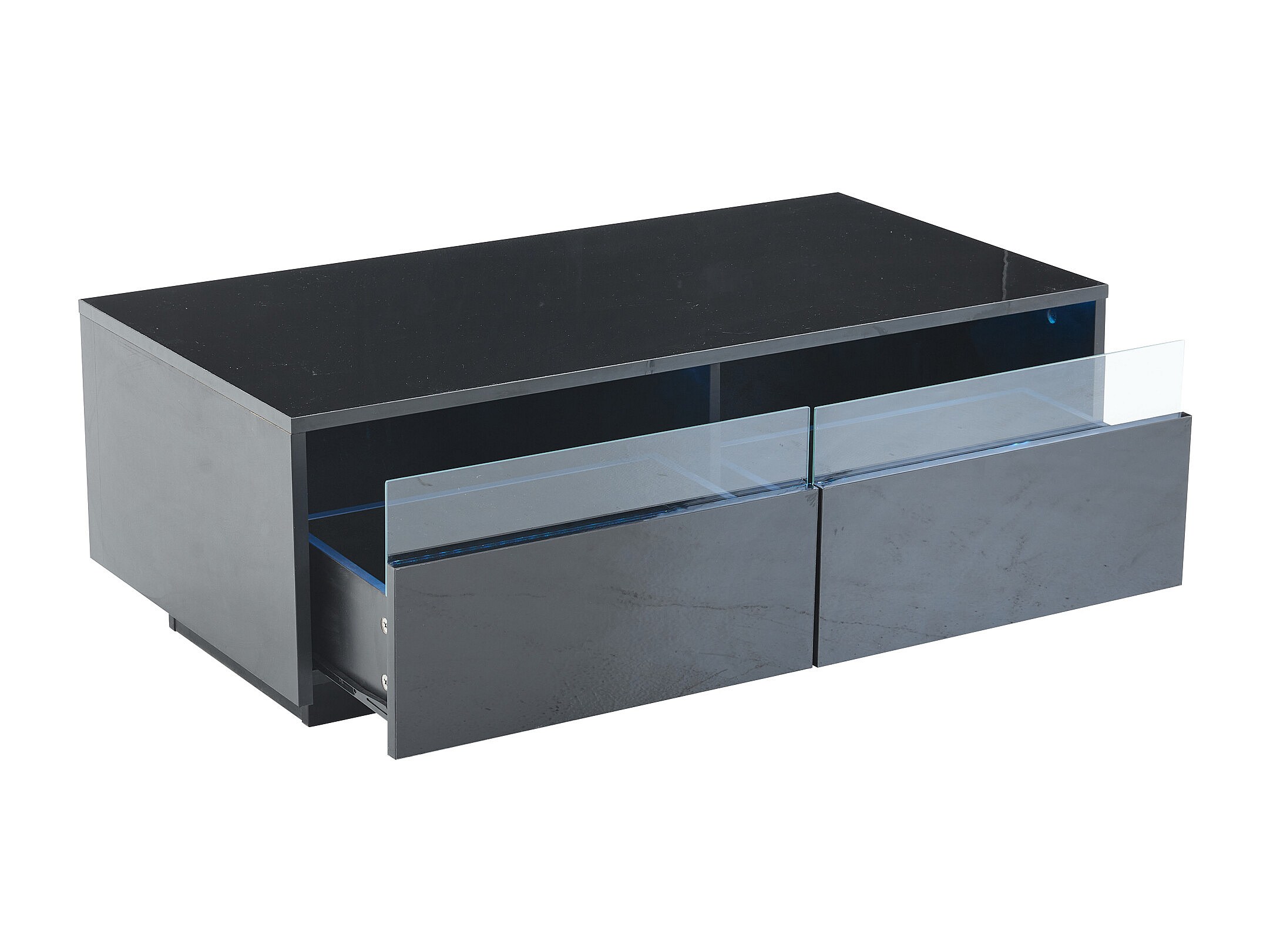 Tavolino da caffè moderno lucido - Tavolino da caffè con 2 cassetti e illuminazione a LED - Nero