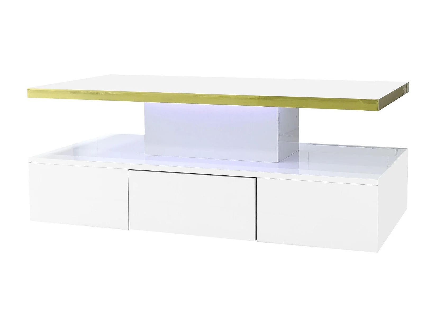 Tavolino moderno laccato bianco con illuminazione a LED e spazio nascosto, pannello di particelle, (100x50x35 cm)