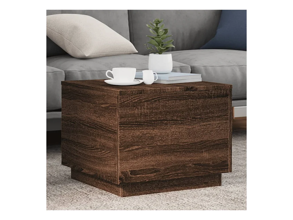 Tavolino con luci LED rovere marrone 50x50x40 cm