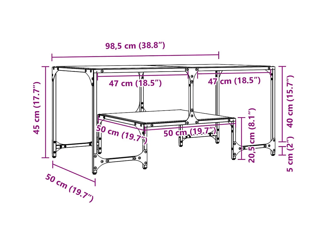 Tavolino con piano in vetro trasparente 98,5x50x45cm acciaio