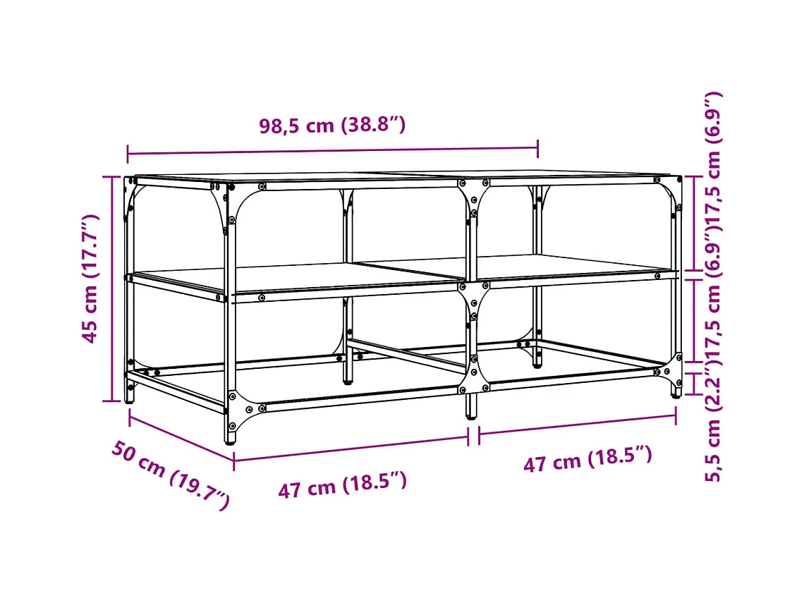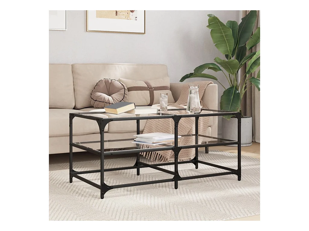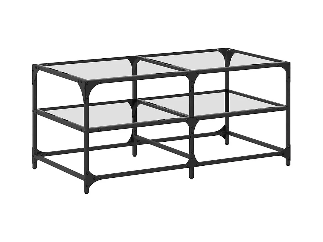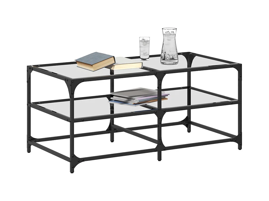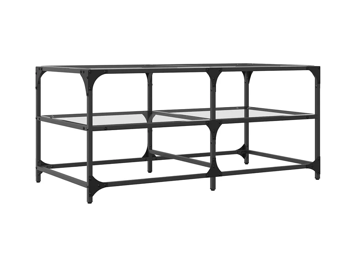 Tavolino con piano in vetro trasparente 98,5x50x45cm acciaio